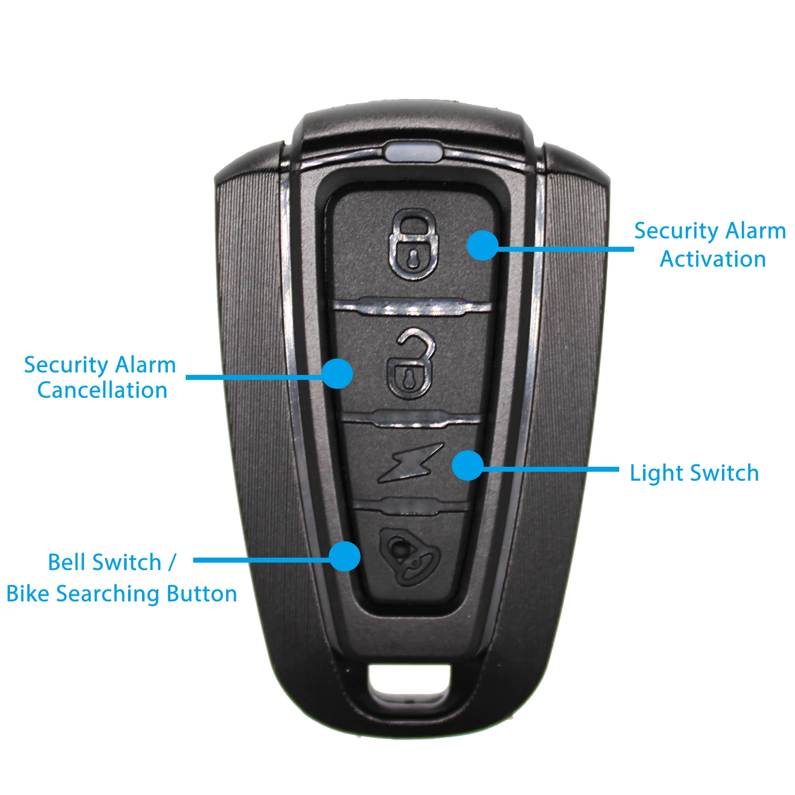 Пульт дистанционного управления: Контроллер имеет дистанцию дистанционного управления до 50 м в очистке. Вы можете управлять всеми функциями, нажав 4 функциональные кнопки на звонке. Таким образом, вы можете легко найти свой велосипед в темноте, включив или включив работающий светильник.