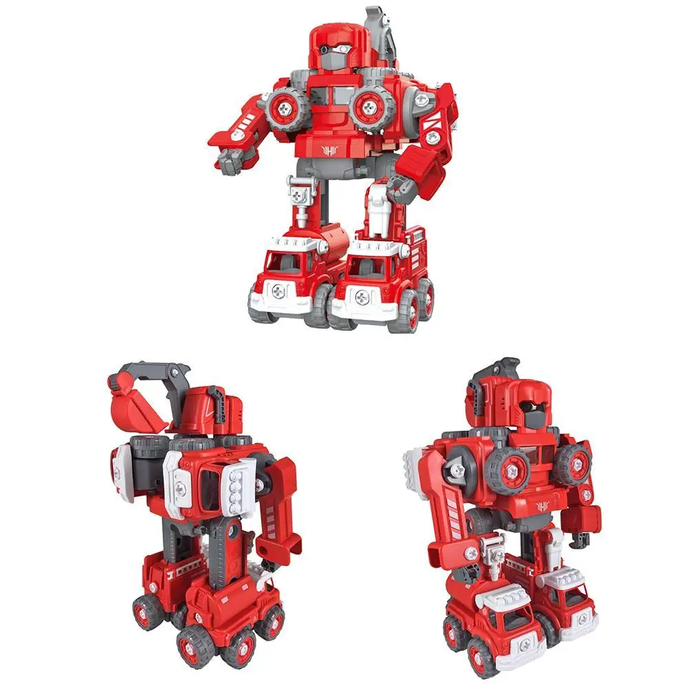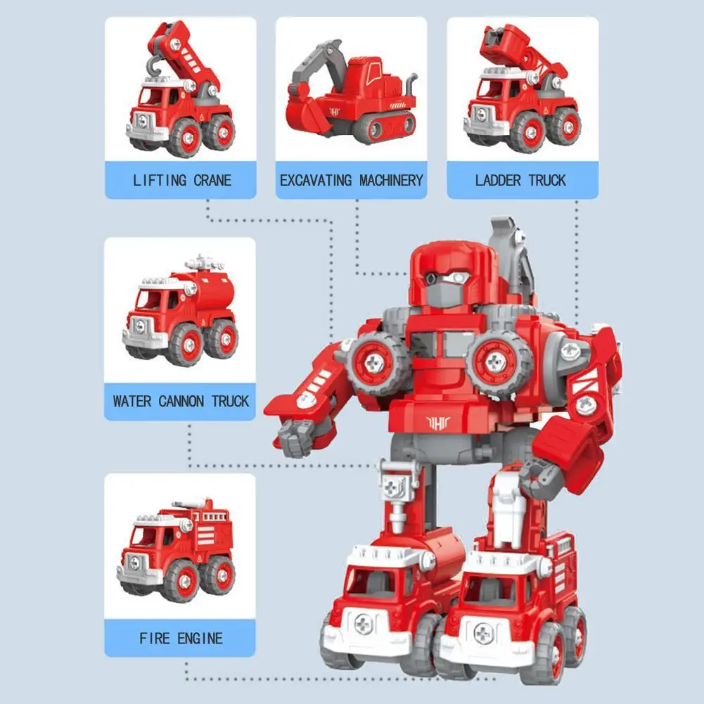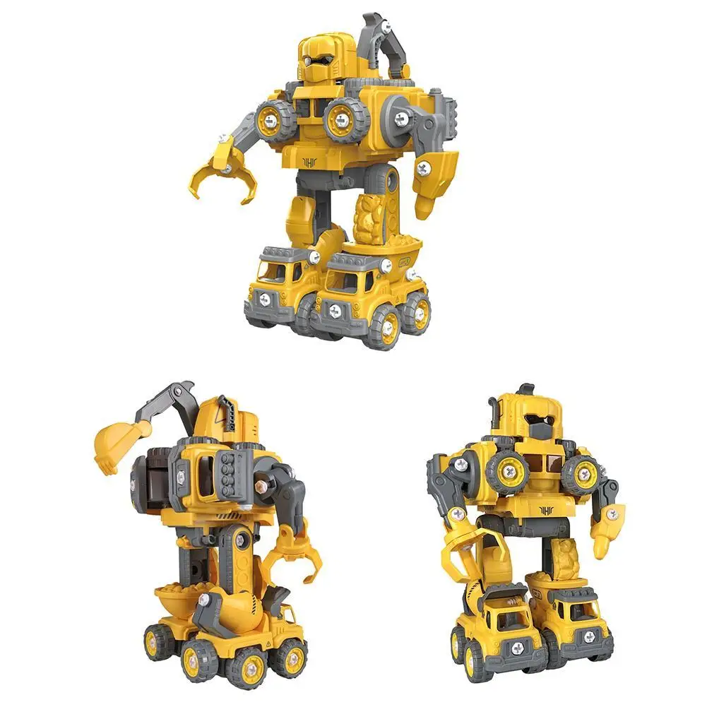 Светильник и музыка, упаковка из 3 AG13, пять инженерных транспортных средств DIY, которые могут быть разобраны и собраны свободно, а также могут быть объединены в большой робот пяти в одном, сочетание инженерных транспортных средств серии и пять в одном трансформационных роботов для продажи электроэнергии.