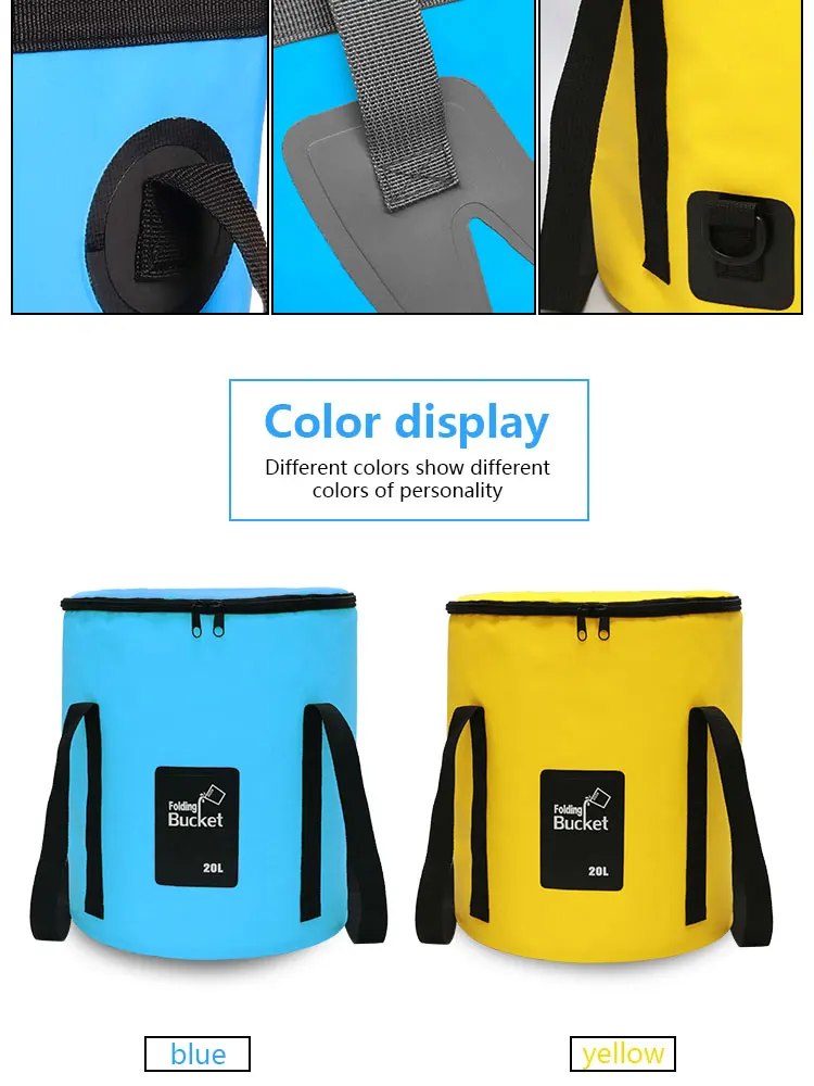 Строгий контроль качества: складная бочка изготовлена из толстого, высококачественного ПВХ и прочного герметичного материала. Ковшовая ткань имеет сопротивление разрыву и сильную стойкость к истиранию и имеет сильную герметичную функцию. Мы проводим герметичные швы и строгие проверки качества на каждом складном ковше для путешествий. Убедитесь, что он хорошо удерживает воду и может взять воду на большое расстояние без протекания.
