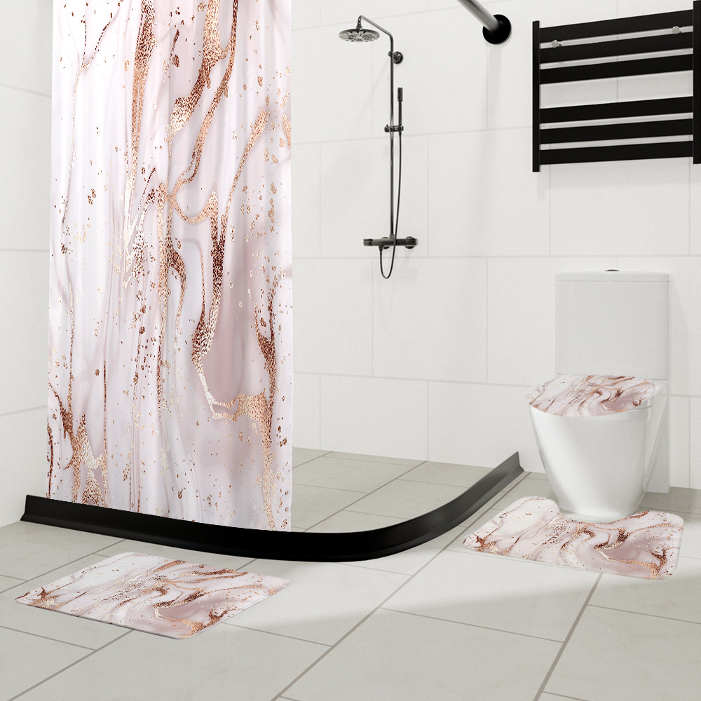 4PCS Marble Shower Curtains for Bathroom Sets Fabric with Hooks Bathroom Shower Curtain and Rug Sets Shower Curtain Waterproof