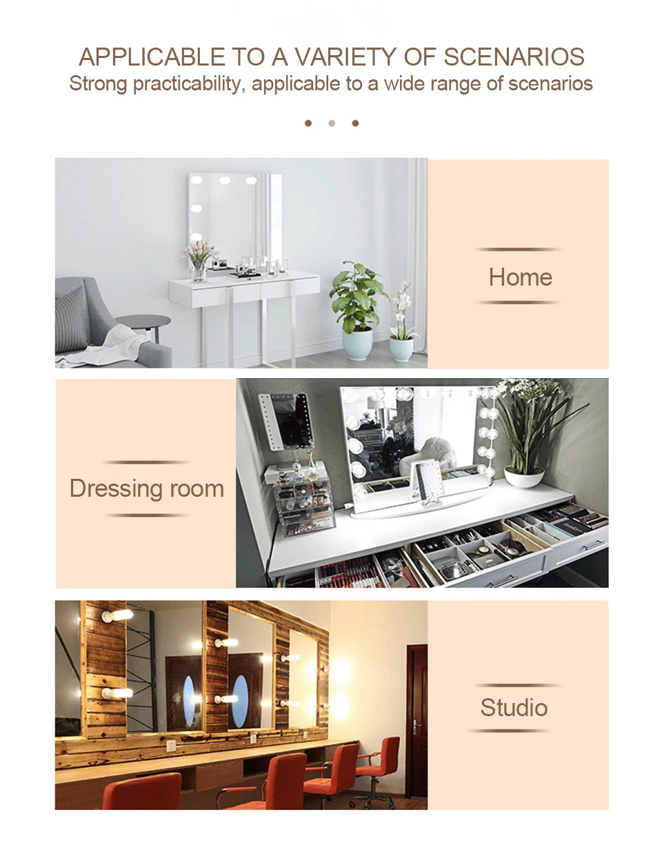 2) портативный дизайн. Компактный размер, портативный для переноски. Снимите его с зеркала и в дороге, легко помещается в чемодан или вещевой мешок