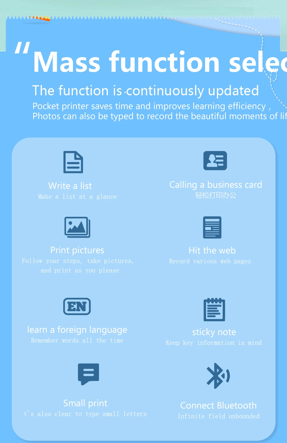 * Усовершенствованная технология термопечати, без чернильного картриджа, удобная и экономичная.Спецификация: