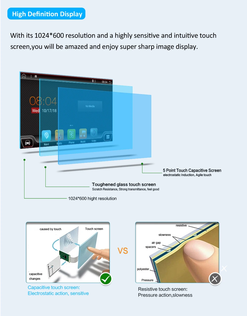Android 10,0 + емкостный экран + 1024*600 + AC8257 Восьмиядерный процессор A53 2,5 GHZ