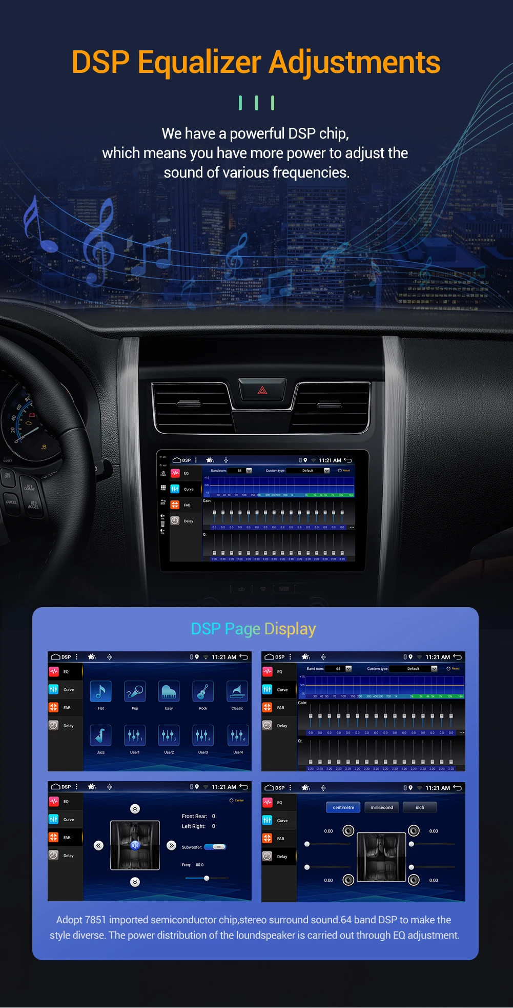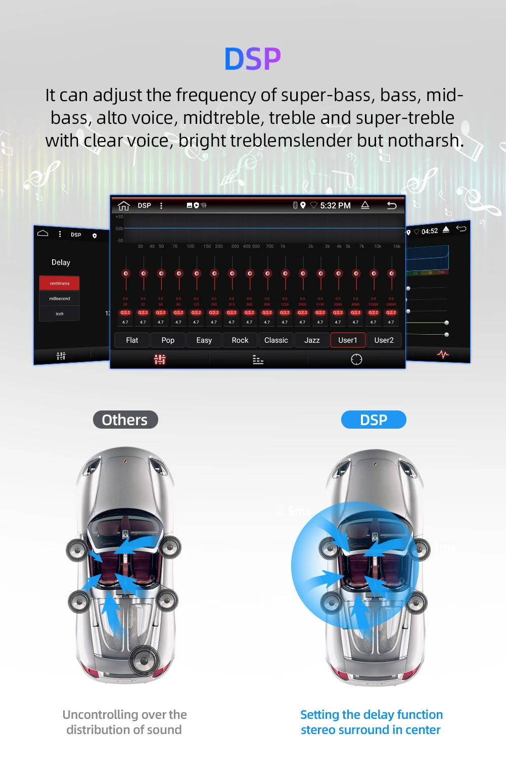 Цифровой DSP 30 EQ Android 10,0 + емкостный экран + 1024*600 + Восьмиядерный процессор RK3399 2,0 GHZ CPU + DDR3 4 GB Flash + 64 GB Memory
