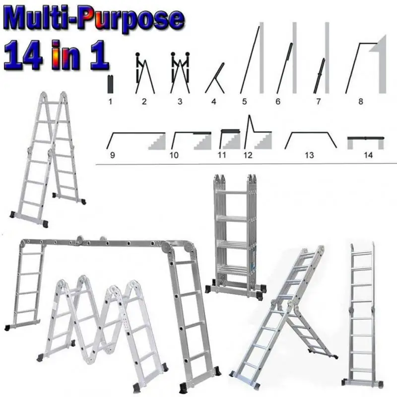 Содержит: 4,7 M серебристо-белый складной 16-приставная алюминиевая лестница (4X4) ручная работа