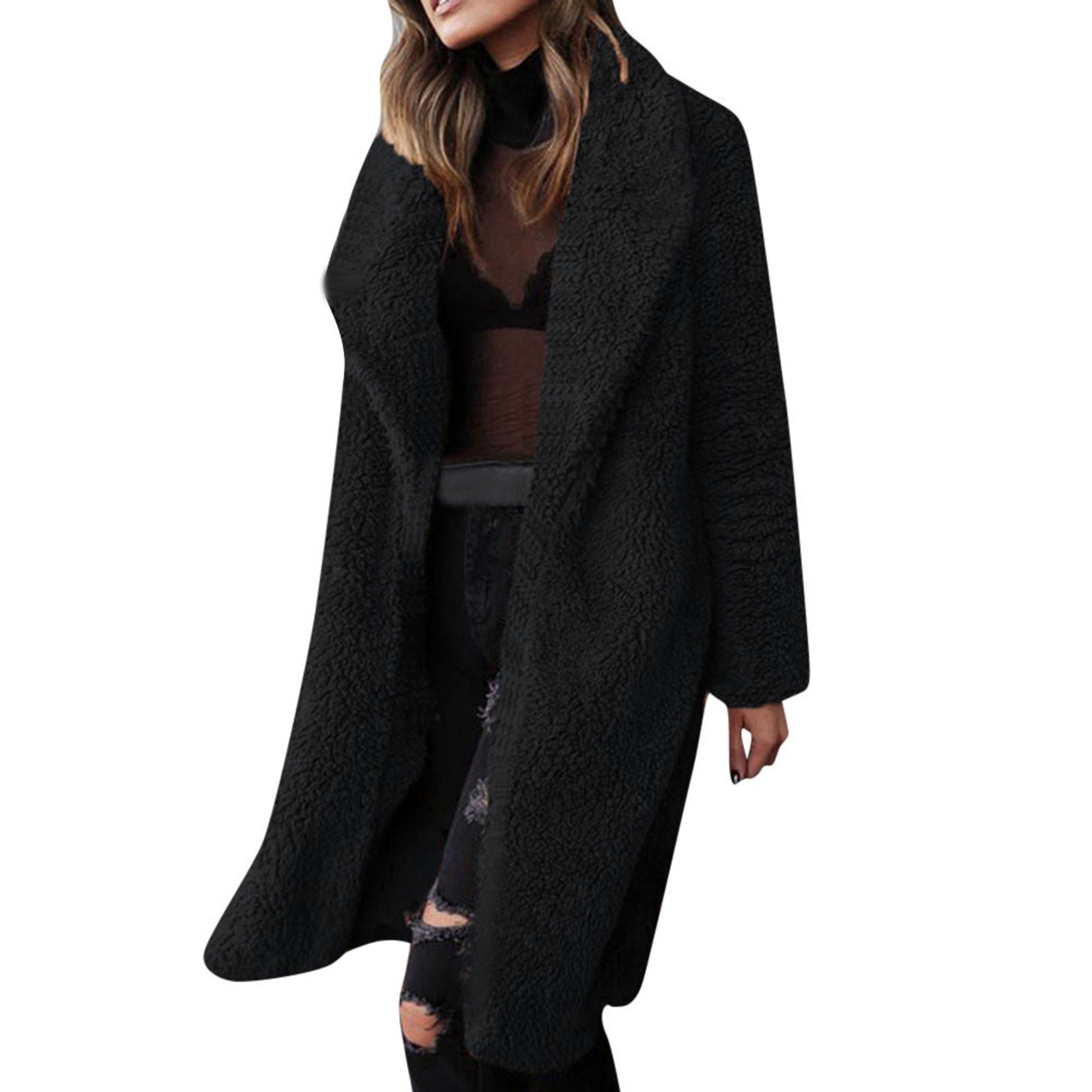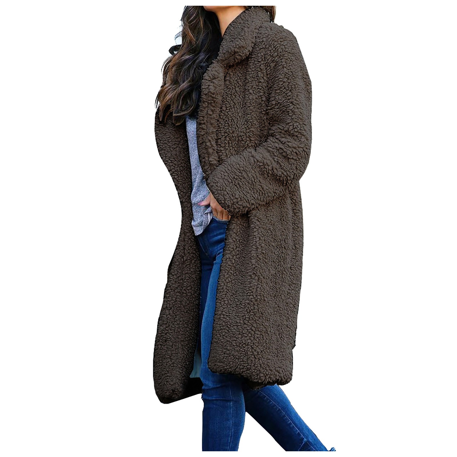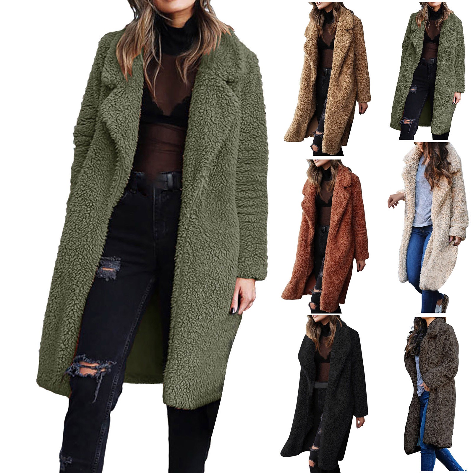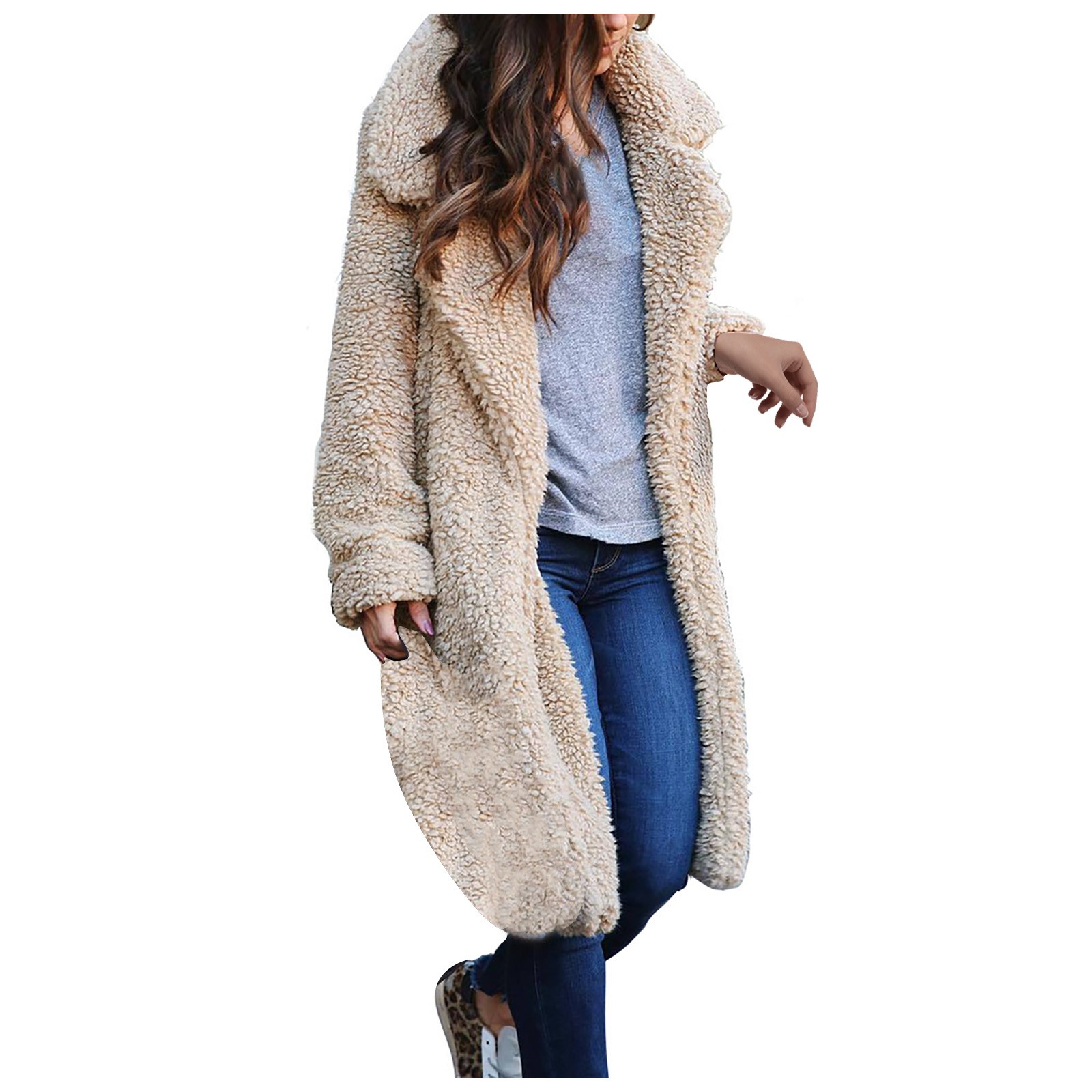 Женская теплая куртка из искусственной шерсти с отворотом, зимняя верхняя одежда