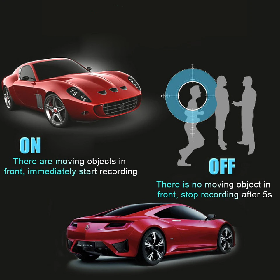 Features: G-Sensor, Cycle Recording, Motion Detection, Parking Monitor, Time&Data Display, Wide Dynamic Range, Picture in picture display, ON/OFF Automatically,Night Vision, Double USB Charger