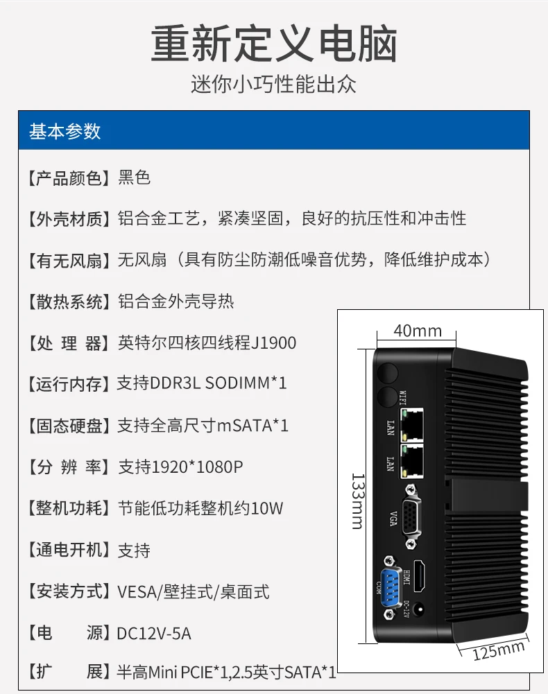 [Около 10 Вт [Поддержка электрической загрузки "установка" VESA/wall/desktopDC12V power ] [ - 5 a [расширение] Мини PCIE * 1 дюйм SATA, 2,5*1133