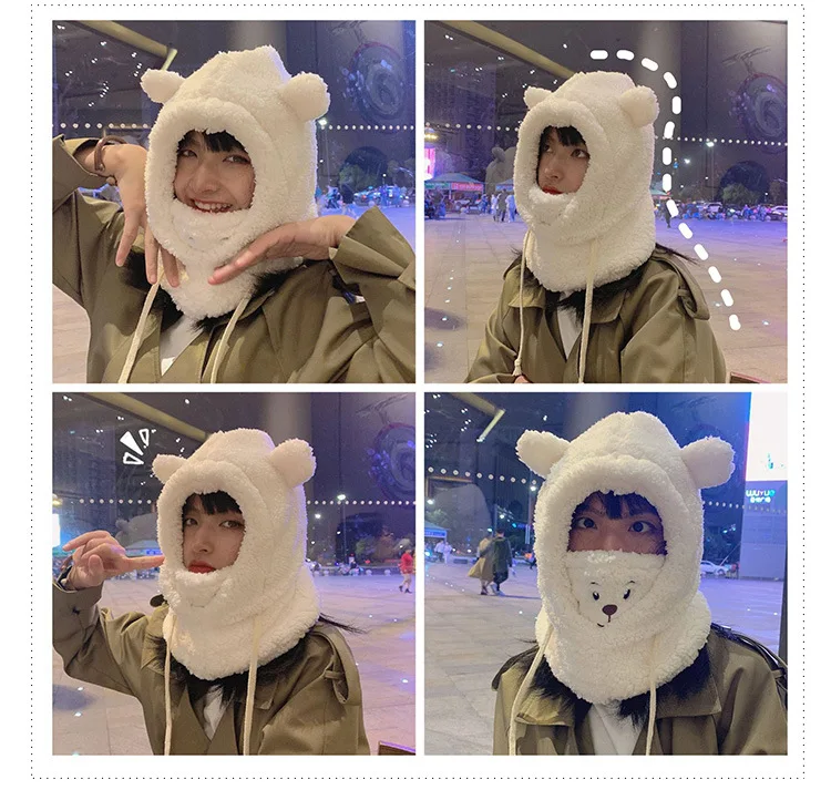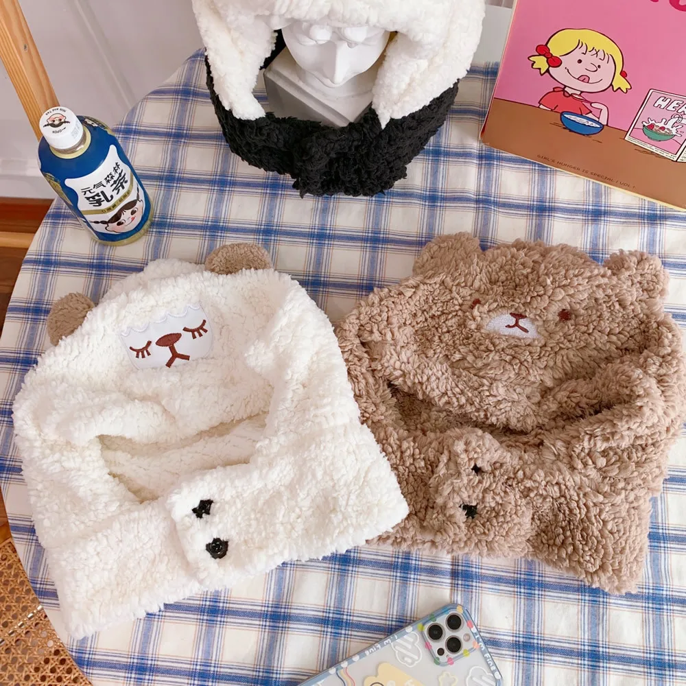 Милый мультяшный медведь, ягненок, плюш, теплые однотонные шапки в виде панды, шарф, набор, маска, зимний теплый защитный ушной головной убор для женщин, подарок для девочки