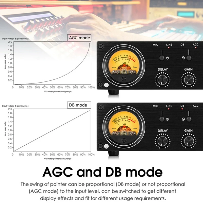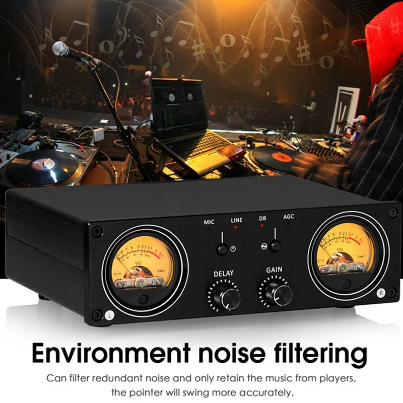 Фильтрация шума окружающей среды, может фильтровать избыточный шум и только удерживать музыку от игроков, указатель будет качаться более точно. Режим AGC и DB, качание указателя может быть пропорциональным (режим DB) или не пропорциональным (режим АРУ) на входной уровень, может быть переключено, чтобы получить различные эффекты отображения и соответствовать различным требованиям использования.
