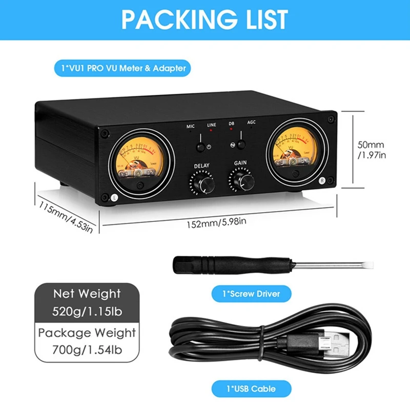 1. VU1 PRO должен питаться от отдельного источника питания USB, не используйте usb-порт компьютеров или другого оборудования для его питания, В противном случае указатель VU meter может перемещаться или шум может быть вызван из-за входного аудио общего заземления.