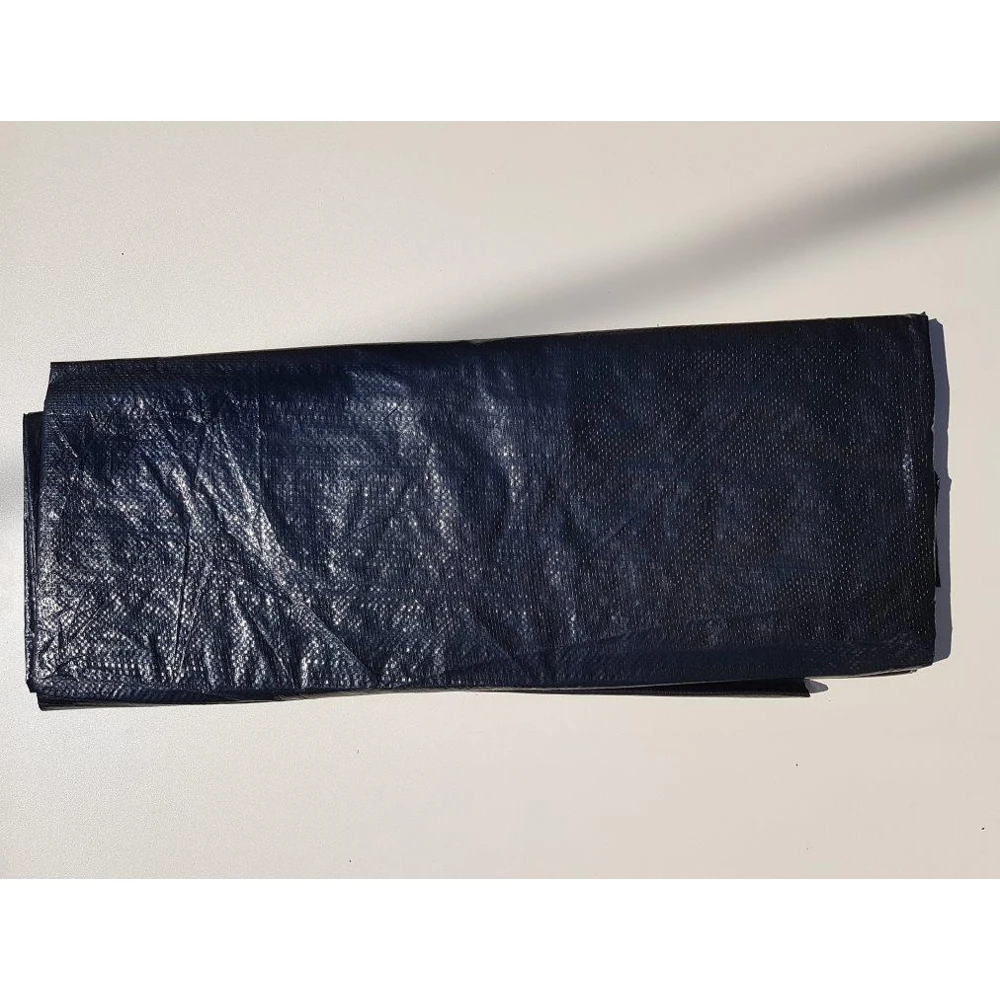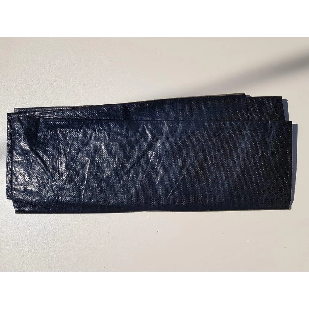 Плотный и крепкий, не такой как синие тенты. По углам пришиты петельки с пластиковыми крючками.