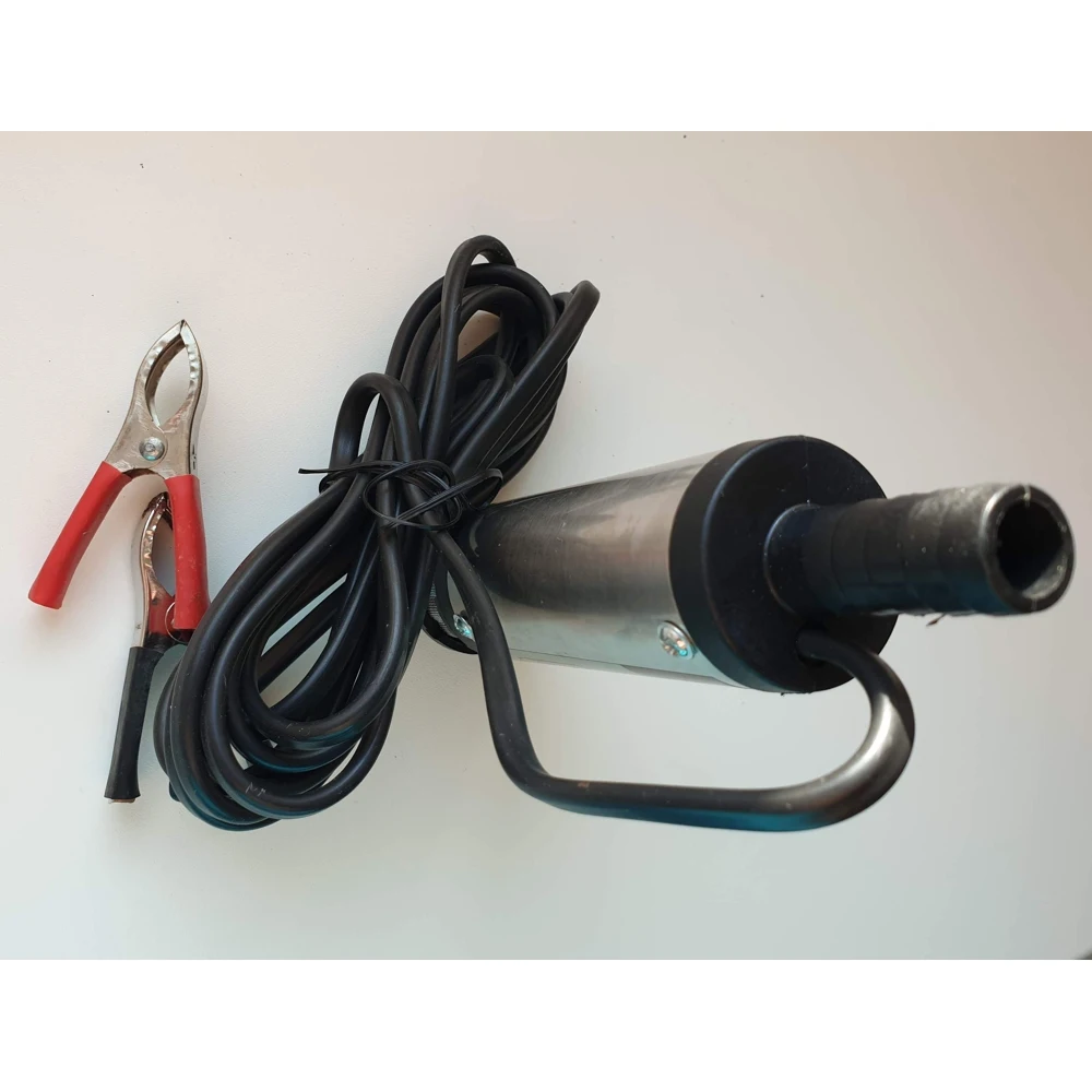 Погружной насос — погружаемый ниже уровня перекачиваемой жидкости. Это обеспечивает подъём жидкости с глубины, хорошее охлаждение узлов насоса. Устанавливается в технологических ёмкостях, предназначенных для перекачки жидких материалов. Питание насоса осуществляется через погружаемый кабель с зажимами для подключения к электропроводке автомобиля. Подача жидкости осуществляется через патрубок с насечкой, что гарантирует надежное крепление шланга к насосу. Имеет съемный моющийся сетчатый фильтр. Насос, для перекачки жидкостей. Небольшие размеры D 38мм позволяют опустить его в канистру.