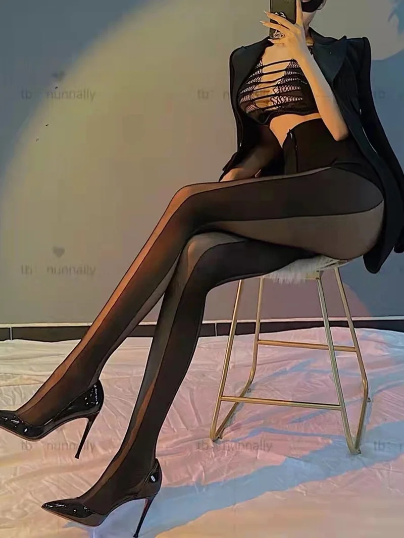 BNew Популярные черные шелковые чулки сексуальные утягивающие Боковые вертикальные полосы теневые колготки в стиле пэчворк женские тонкие готические колготки