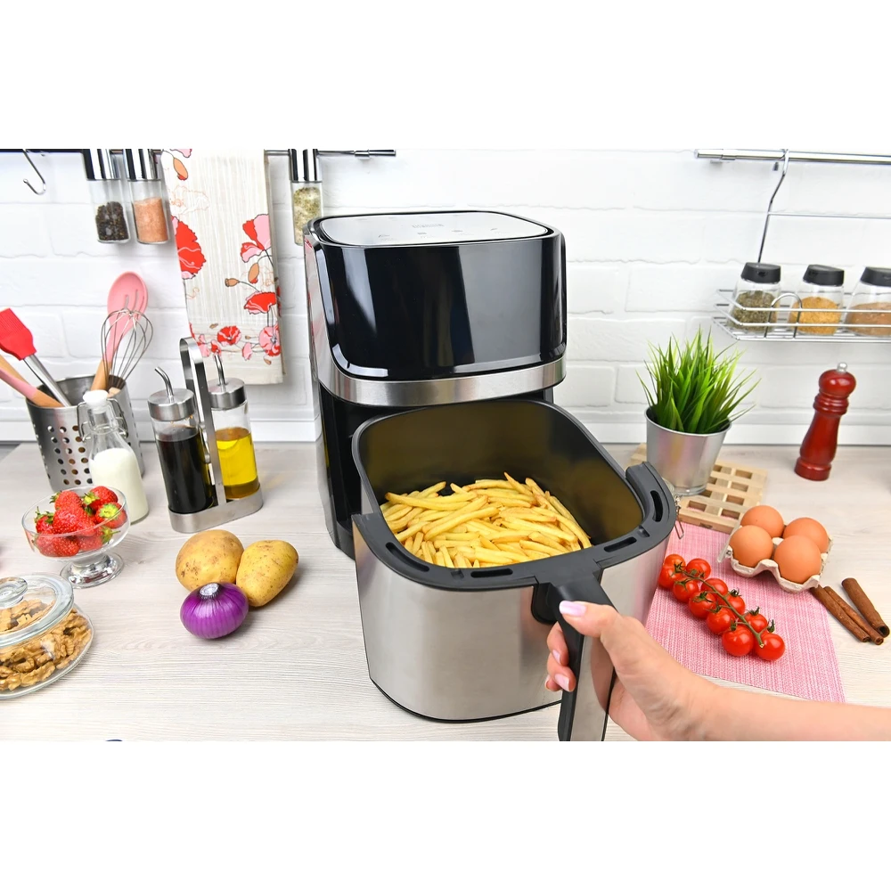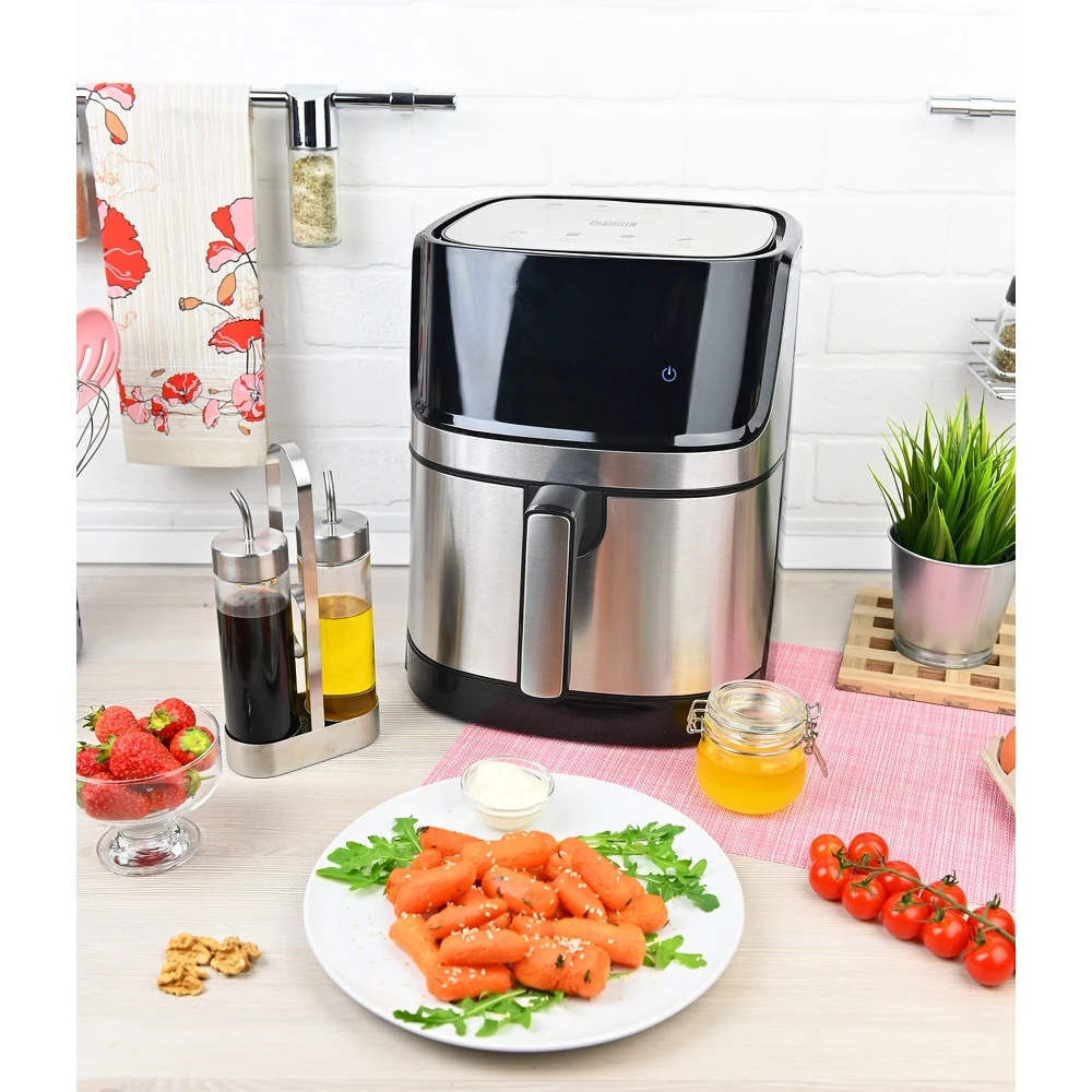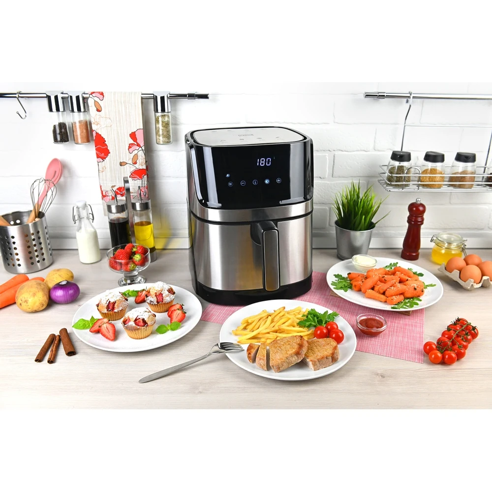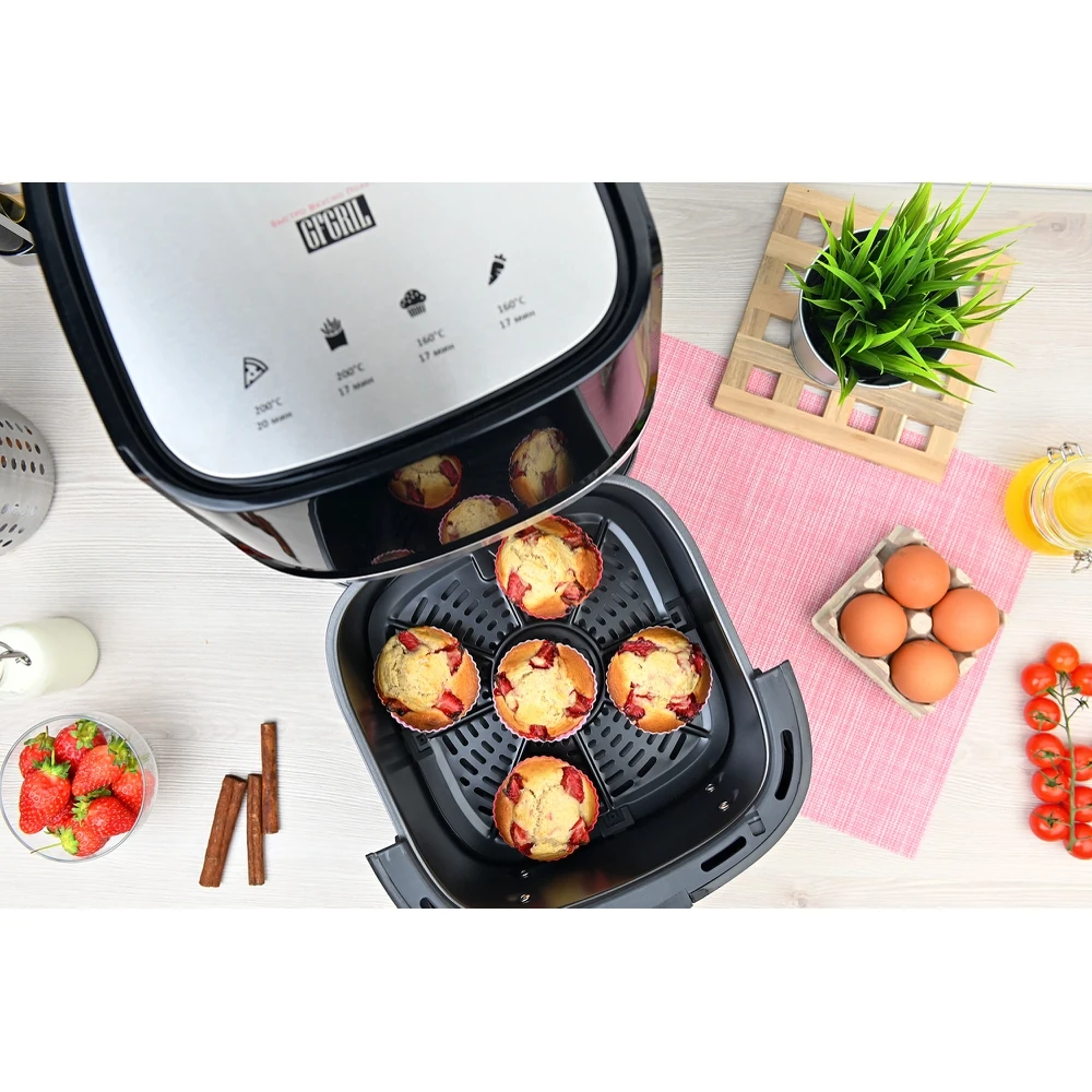 Аэрогриль GFGRIL GFA-6000, технология Rapid Air, дисплей, 8 программ, корпус из нержавеющей стали, 5.8 л