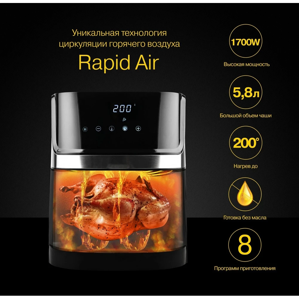 GFA-6000, технология Rapid Air, дисплей, 8 программ, корпус из нержавеющей стали, 5.8 л