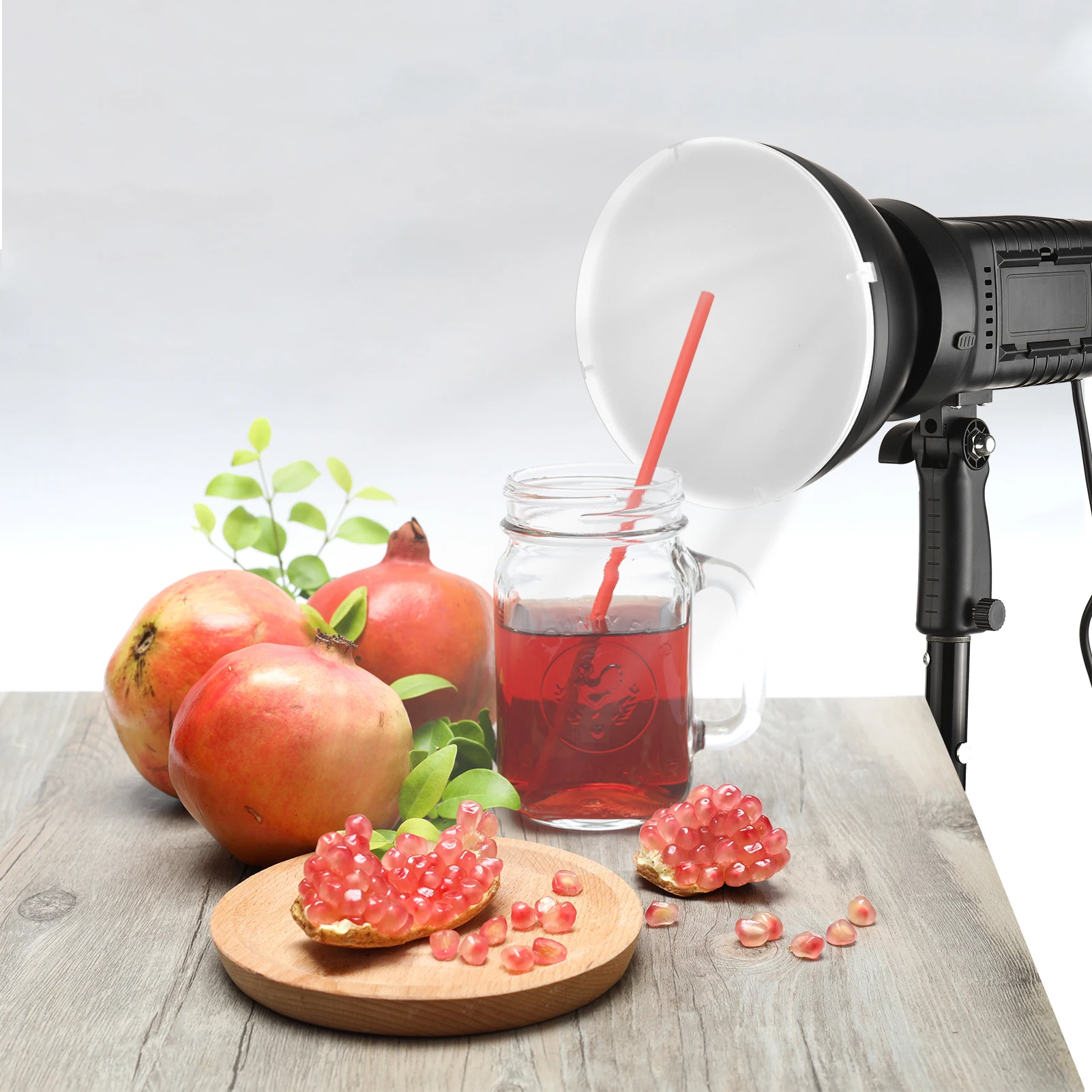 [Стандартное Крепление Bowens и цветные фильтры]Совместим с абажуром, софтбоксом, мягким зонтиком и так далее; Поставляется с синими, оранжевыми и белыми фильтрами для создания различных световых эффектов.