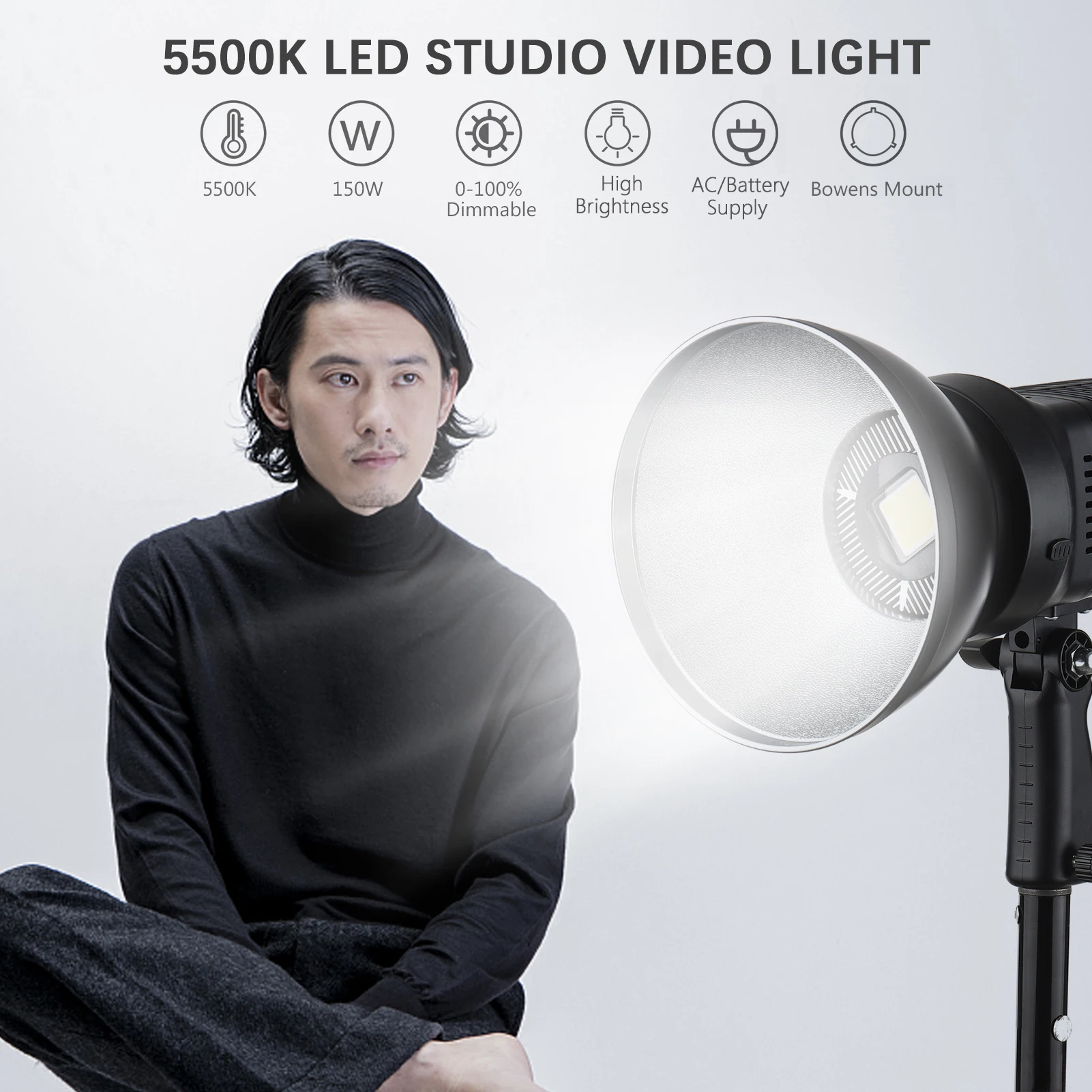 [Отличная производительность Освещения]Высокая энергия 150 Вт Выходная мощность, COB лампы, CRI 96, очень близко к естественному дневному освещению, обеспечивая эффективный, стабильный и естественный источник освещения для более ярких фотографий и видео с яркими цветами.