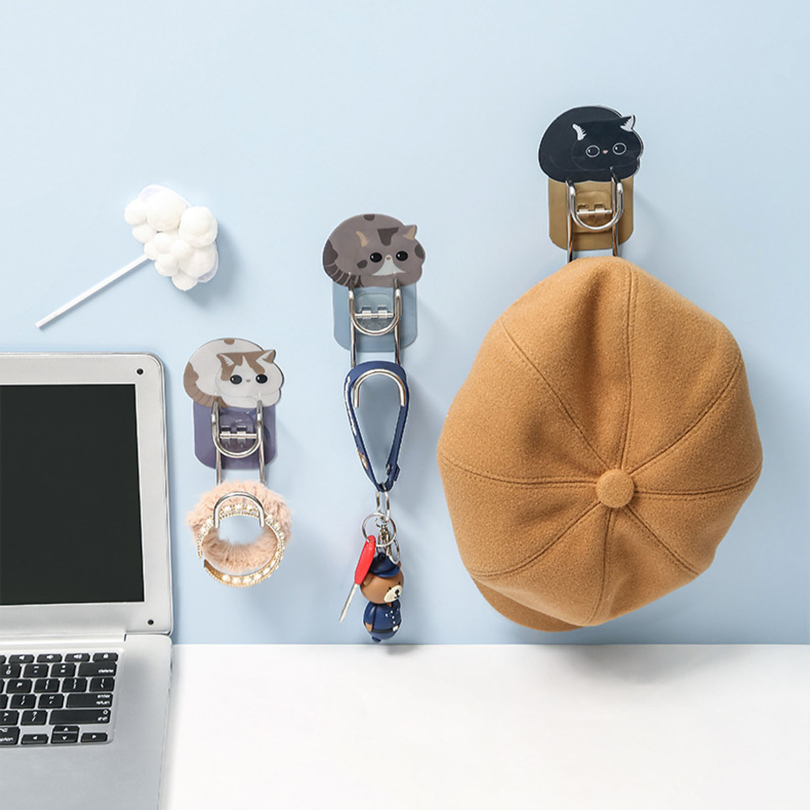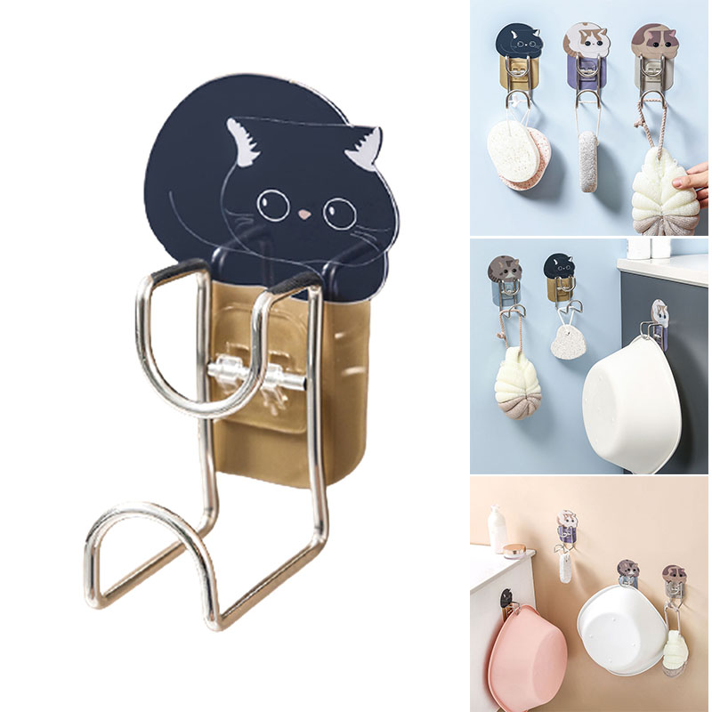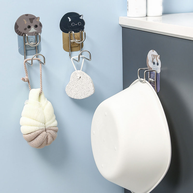 Моющийся крюк для бассейна, многофункциональные клейкие крючки, милый мультяшный Кот, дырокол, органайзер для ванной комнаты, кухни