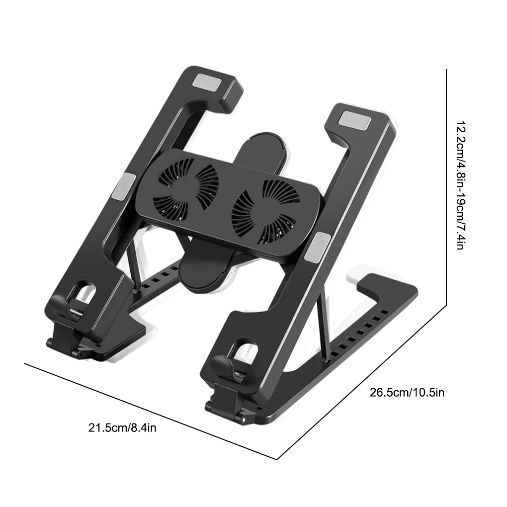 Два вентилятора: этот держатель для ноутбука оснащен двумя вентиляторами охлаждения, быстро охлаждает, защищая ваши устройства от перегрева.