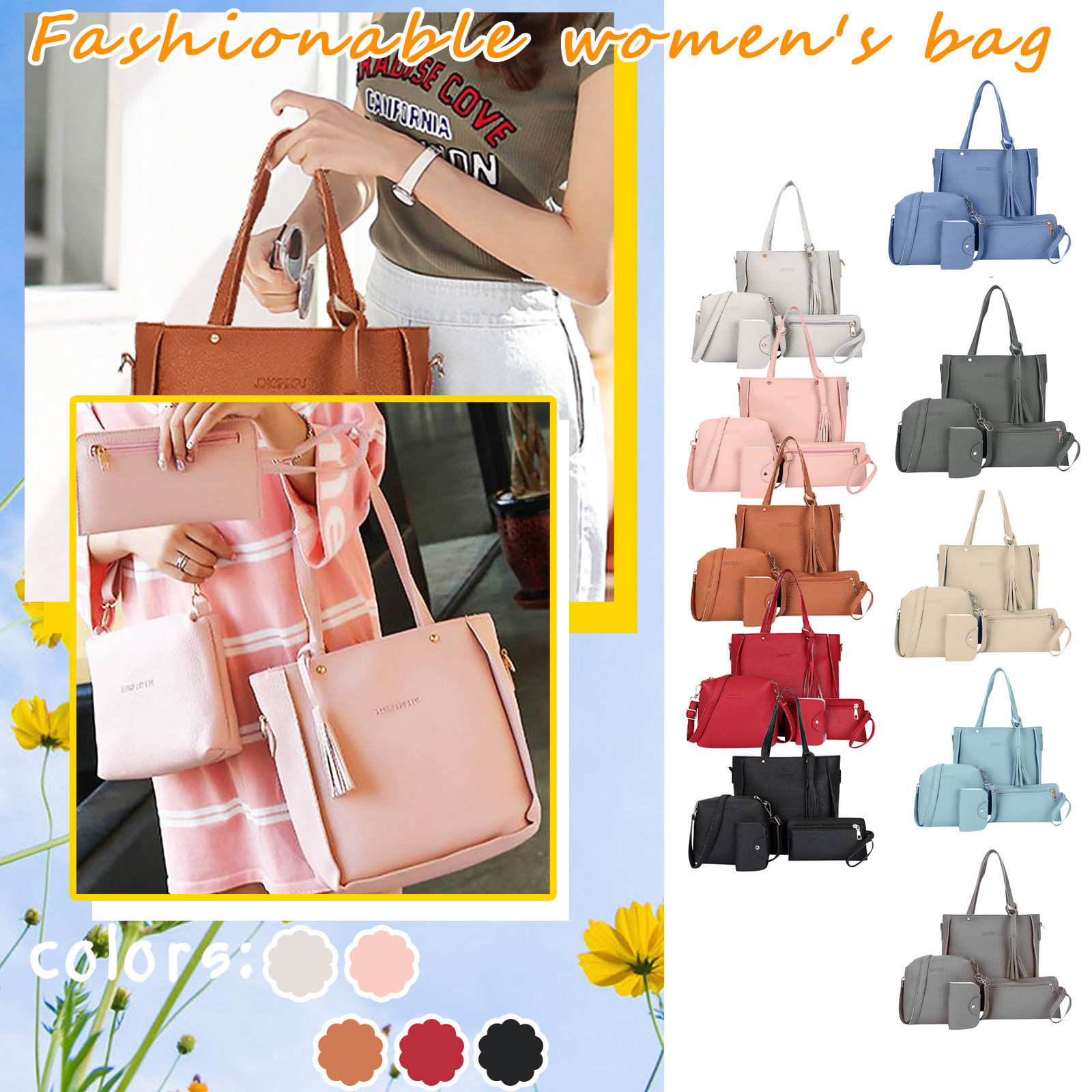 Посылка включает:1 сумка, 1 сумка-мессенджер, 1 кошелек, 1 карточка-посылка