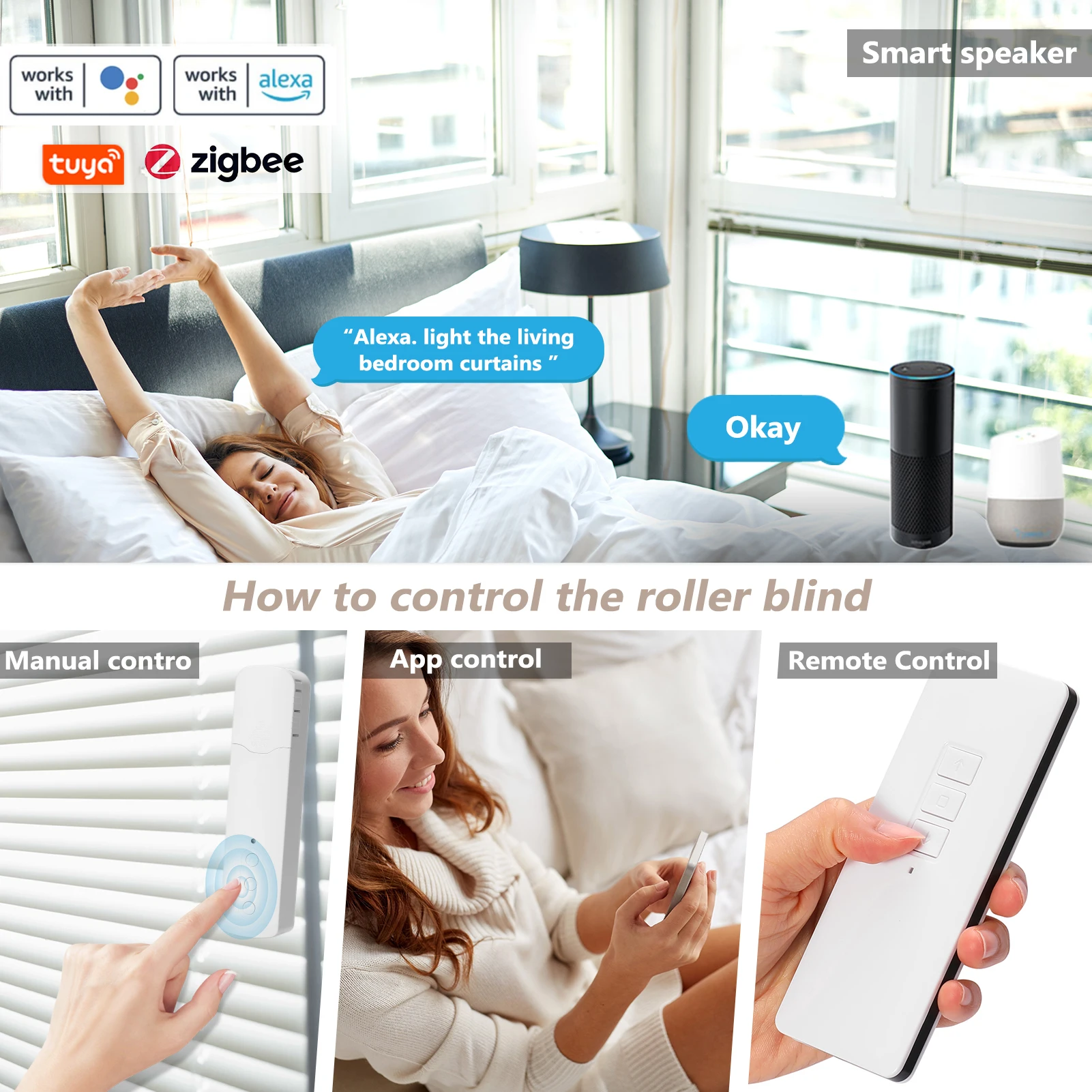 Голосовое управление: с этим шторным мотором и голосовым помощником, таким как Alexa и Google Home, вы можете контролировать свой занавес своим голосом.