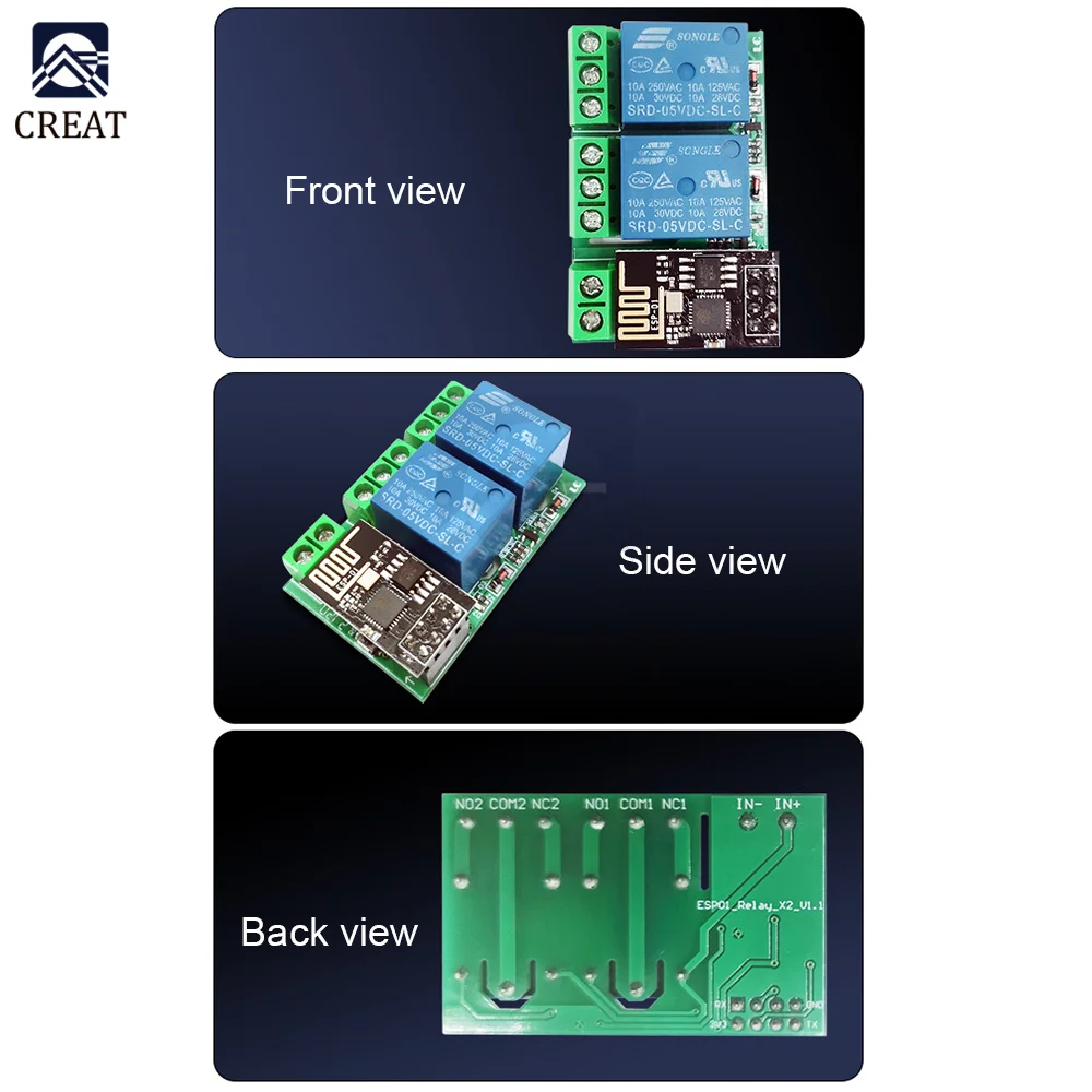 Этот модуль управляется ESP-O1/ESP-01S как WiFi модуль. Он может управляться через мобильный телефон и может использоваться в смарт-домах DIY. Он не должен быть настроен, он готов к использованию, и он прост и удобен в использовании.