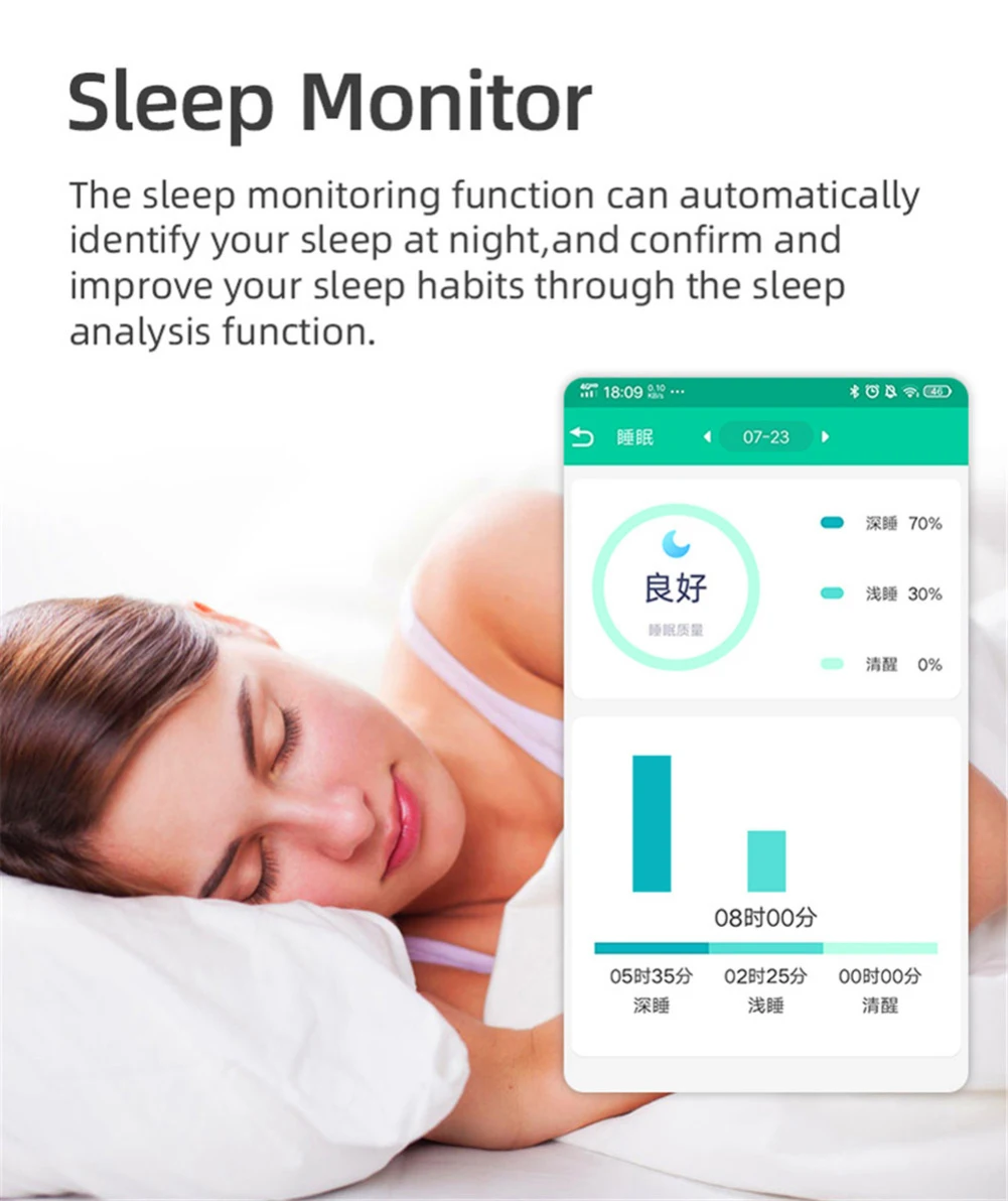 Многофункциональный дизайн: монитор сердечного ритма, кровяное давление, мониторинг кислорода в крови, счетчик шагов шагомера, потребление калорий, пробег, уведомления о сообщениях и звонках, будильник, дистанционный спуск затвора камеры, напоминание о сидячем положении, монитор сна, мобильный телефон поиск, интеллектуальный анти-потеря, поддержка 13 языков, управление музыкой, погода и т. Д.!