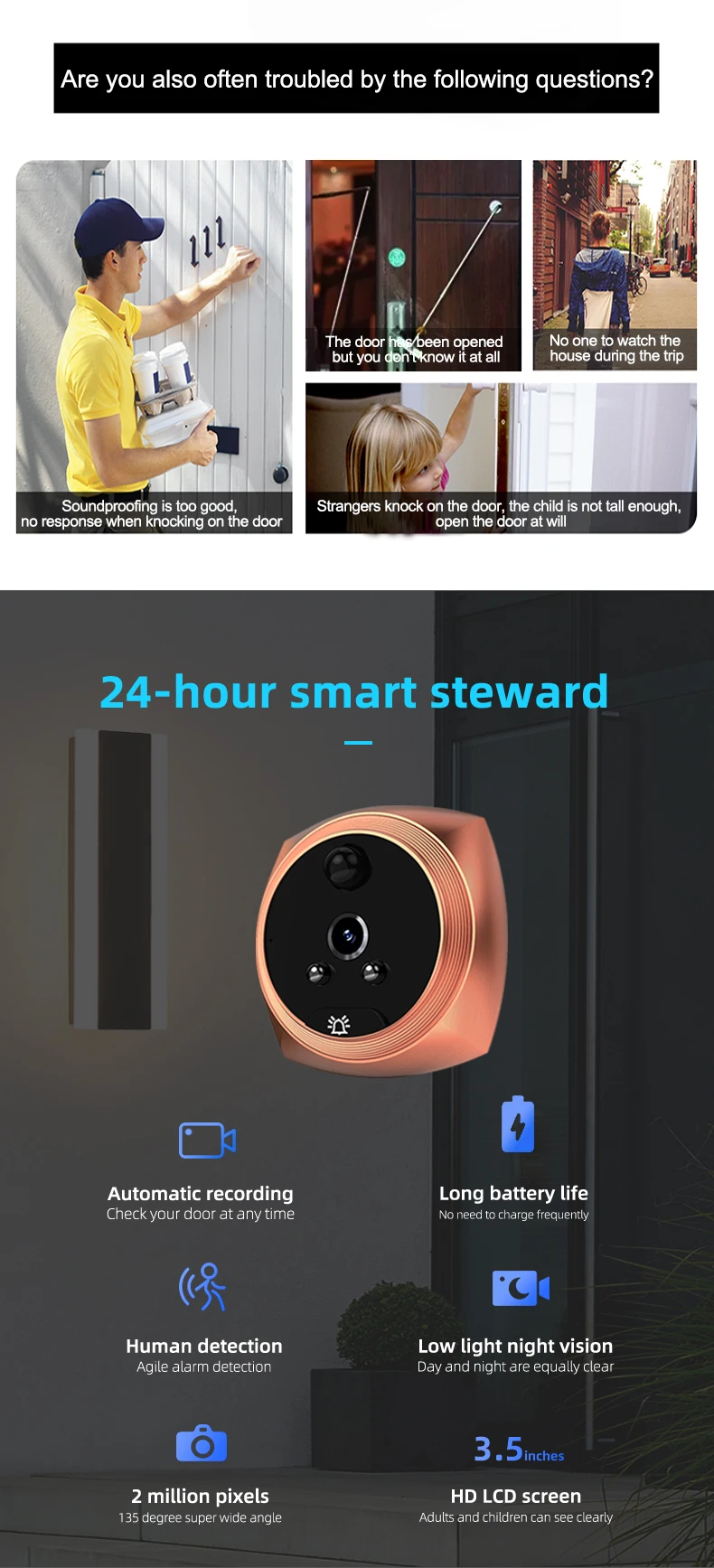 3,5 дюймовый дисплей видео глазок камера детектор движения монитор Цифровой зритель дверь глаз безопасности Голосовая фотография Запись дверной Звонок