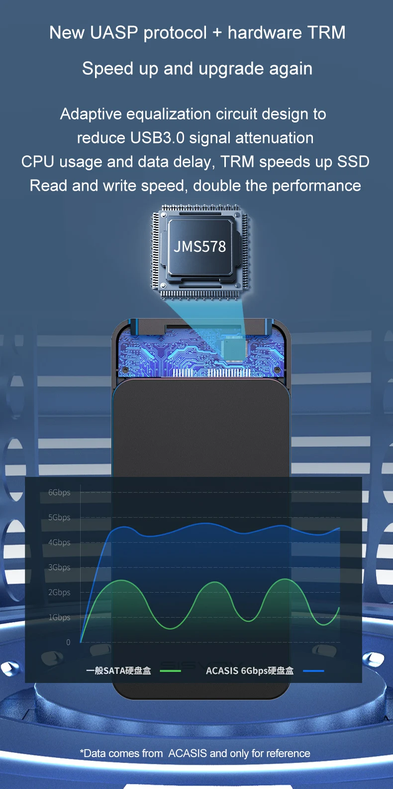 Особенности: свободный 50 см кабель USB3.0/5 Гбит/с, умный сон