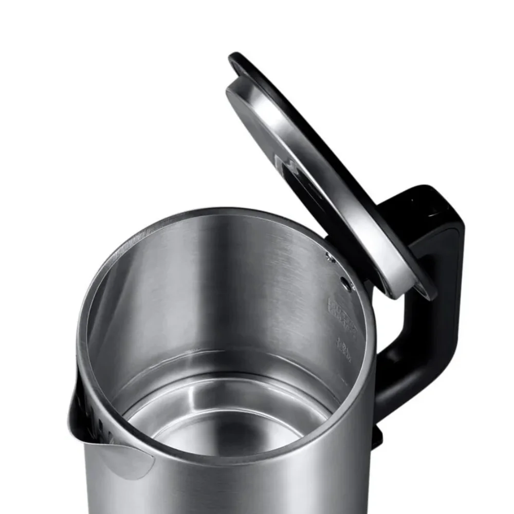 Чайник VIOMI V-MK151B XIAOMI идеально сочетается с хай-тековым оформлением кухни благодаря минималистичному дизайну. Его мощный нагреватель позволяет вскипятить 1,5 л воды всего за пять минут, чтобы приготовить шесть порций горячих напитков. Чайник изготовлен из нержавеющей стали AISI 304, устойчивой к воздействию кислот, щелочей и минералов. Он сохраняет естественный вкус воды и не выделяет вредных веществ. Прочный сплав выдерживает сильные удары и легко отмывается от накипи. Широкая крышка позволяет быстро очищать колбу с плоским дном и гладкими стенками. Она откидывается нажатием кнопки, поэтому вам не нужно подставлять руки под струю пара.