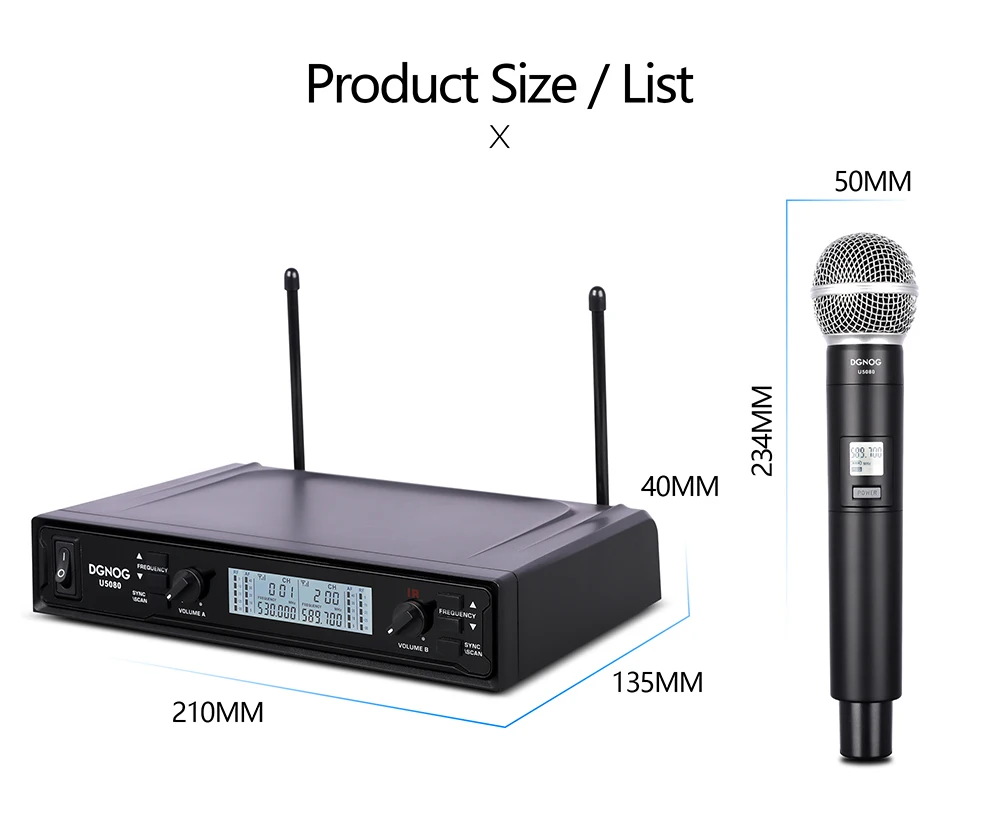 【Четкое и оригинальное качество звука】-С профессиональной кардиоидной динамической капсулой, система может воспроизводить более превосходный, чистый, чистый и полный звук и устраняет фоновый шум и завывание. Идеально подходит для караоке, дома KTV, большие вечерние, DJ, свадьбы, классного использования.