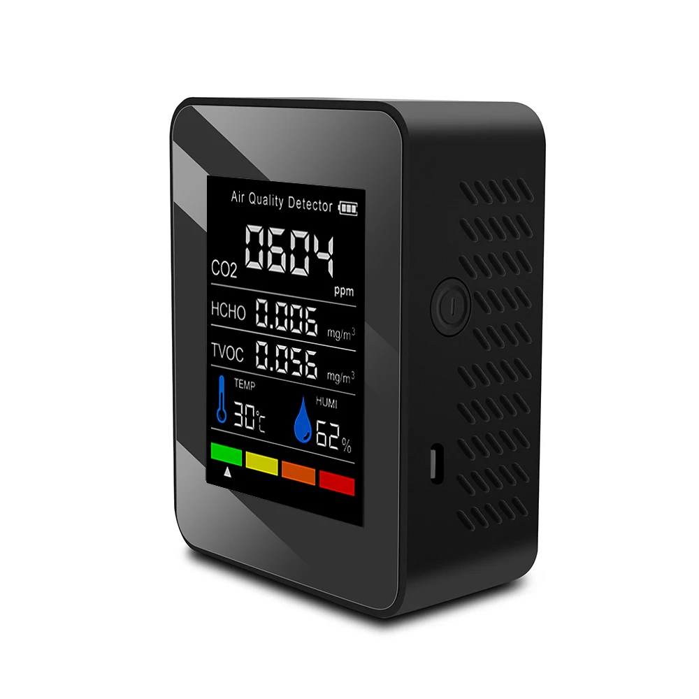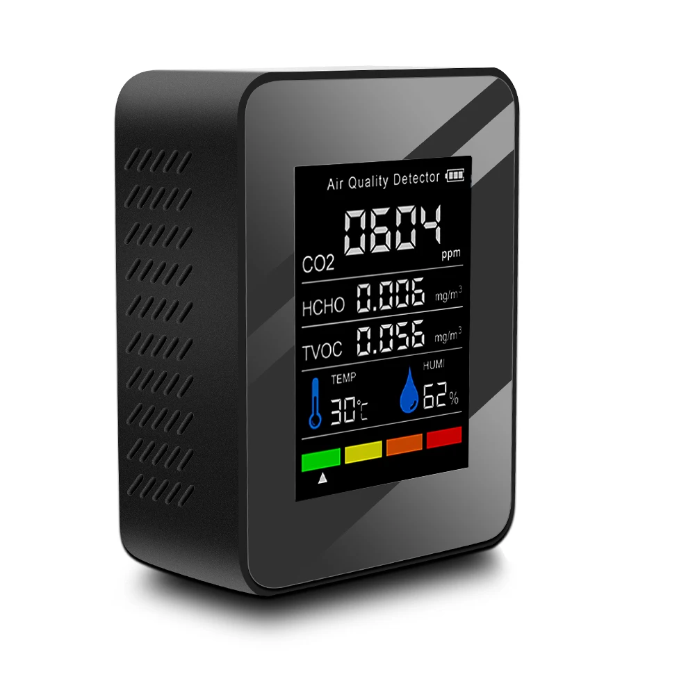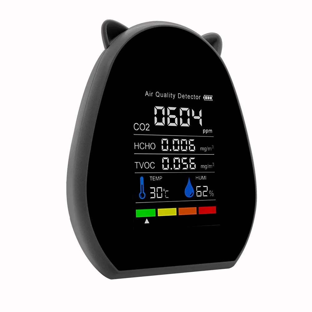 Это своего рода качественный детектор качества воздуха, компактный размер, легкий и портативный. Принимает высокоточные полупроводниковые датчики, обнаружение в реальном времени, автоматическое обновление данных, с мульти-использованием. 2,8 дюймов Большой ЖК-дисплей дисплей, вы можете увидеть количество электроэнергии, CO2 значение, хкхо значение, TVOC и соотношение цена/качество, температуры и влажности, которые четко. Широкое применение: сельскохозяйственная посадка, тепличные овощи, производственный склад, обработка материалов, домашний интерьер, офисы и т. д.