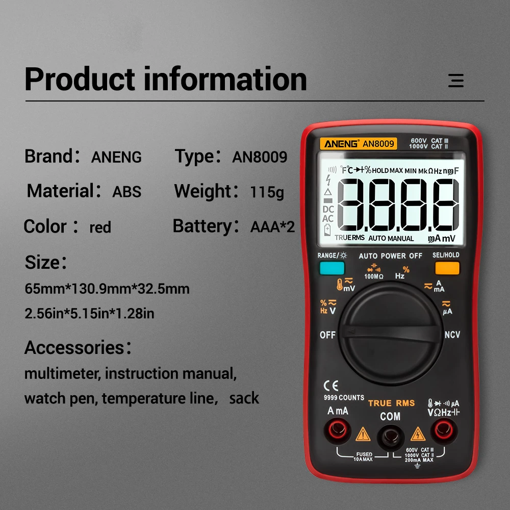 Модель цифрового мультиметра может измерять напряжение переменного/постоянного тока, постоянный ток, сопротивление, непрерывность, диоды, транзисторы hFE и так далее. Портативный и простой в использовании. Он может хорошо обслуживать в обслуживании авто, электротехники и теачиг лаборатории, и т. Д.