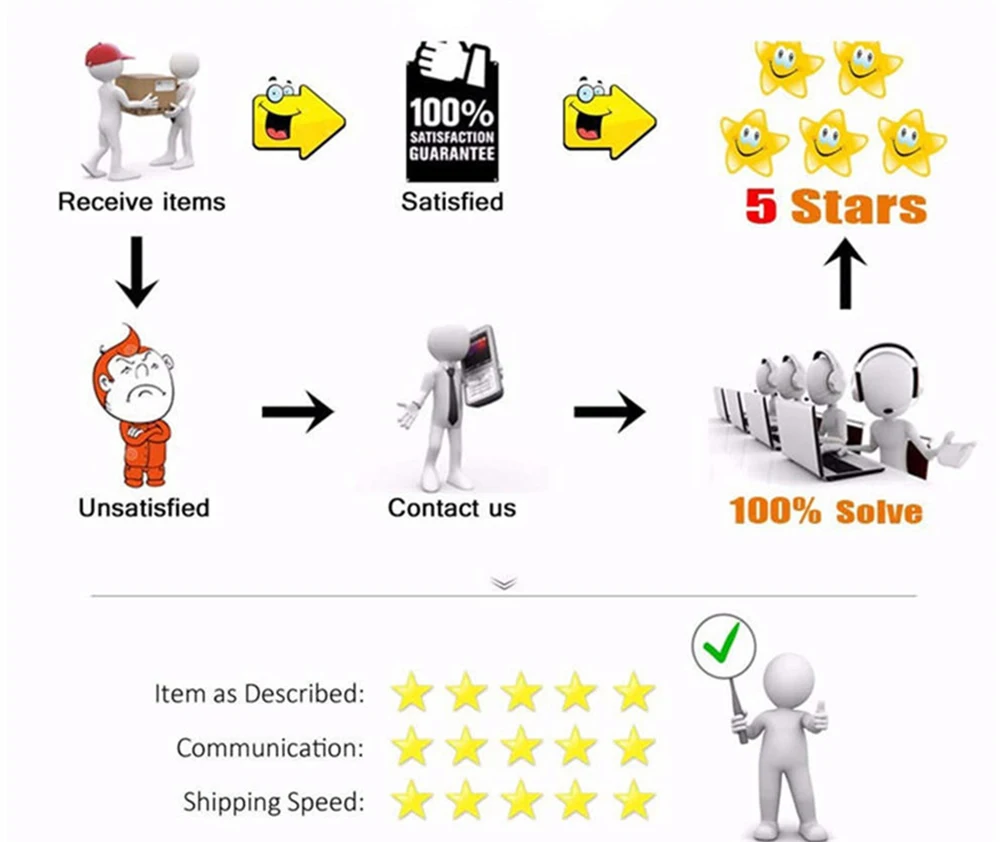After you recived the goods, pls give us a positive feedback if you are satisfied with our quality. If any do not satisfy or angry, Please contact us immediately before leaving feedback, We will try our best to solve the problem until you satisfy.