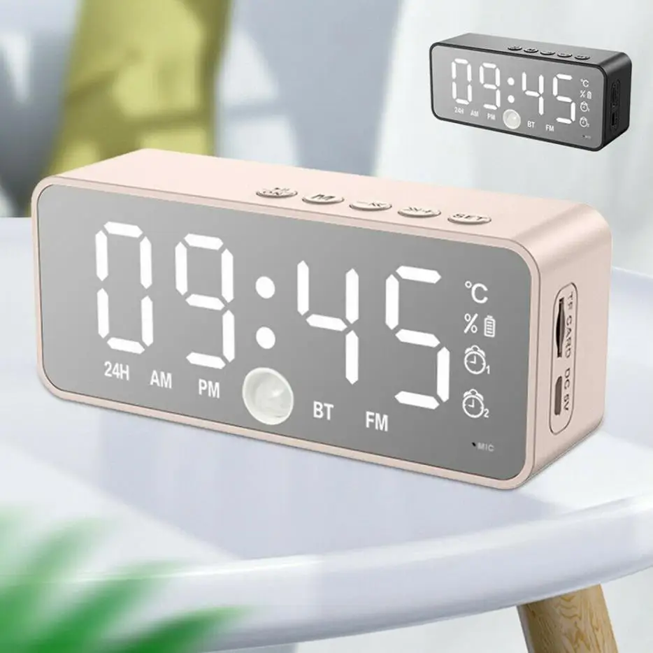 Зеркало Bluetooth аудио будильник Настольный Декор динамик бас беспроводная коллекция Радио цифровые часы светодиодный настольные электронные часы