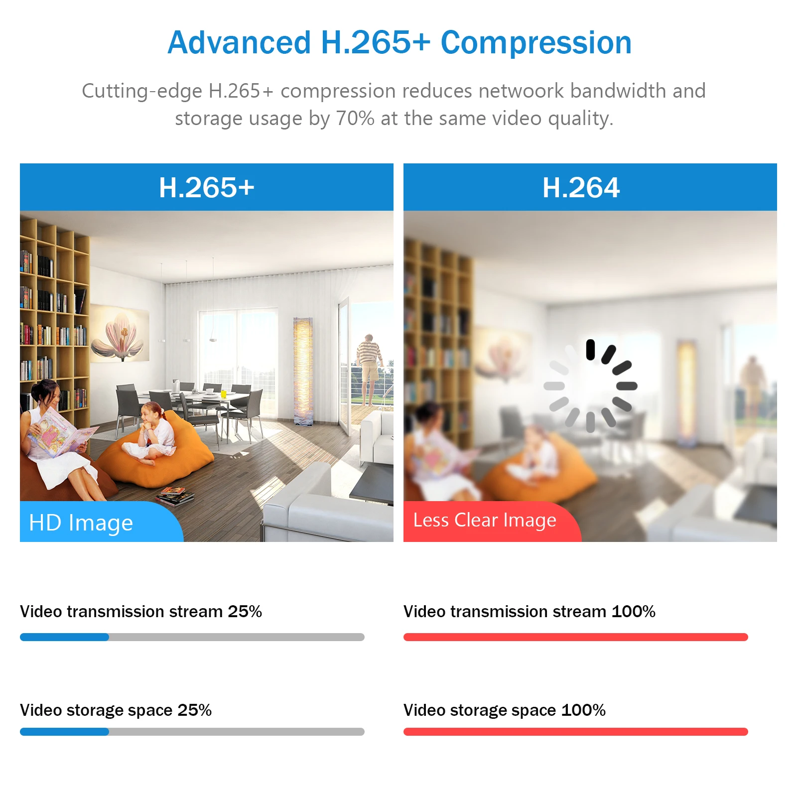 Умный H.264/H.265 (Применимо к различным полосам пропускания и средам хранения)