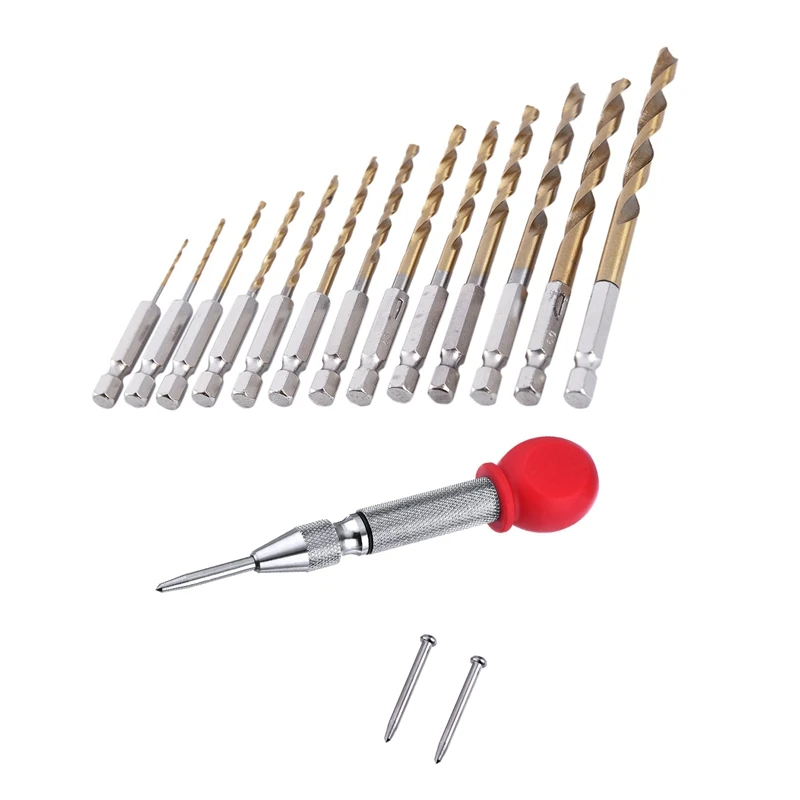 13 шт. HSS Титан покрытием набор сверл с 1/4 дюйма шестигранный хвостовик с 5 дюймов автоматический центр Дырокол маркер скребок