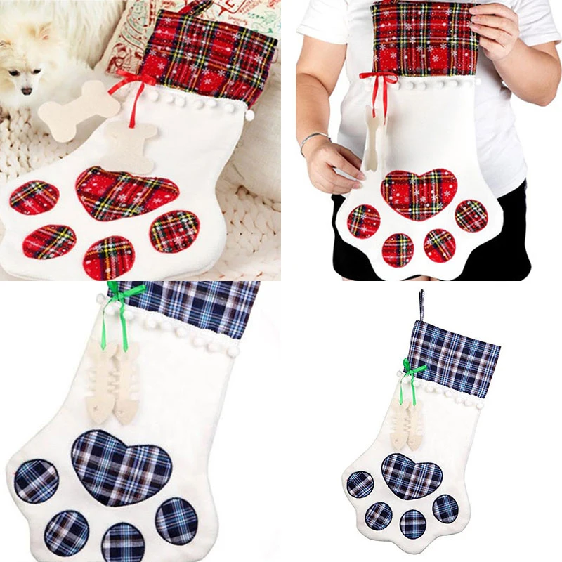 Рождественские чулки в клетку с собачьей лапой, различные стили, каждый из которых имеет свои особенности, модный и милый. Подходит для Рождественского украшения.