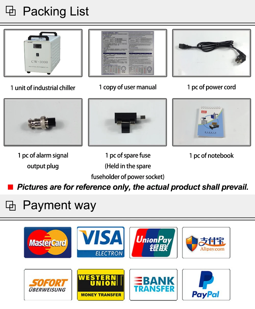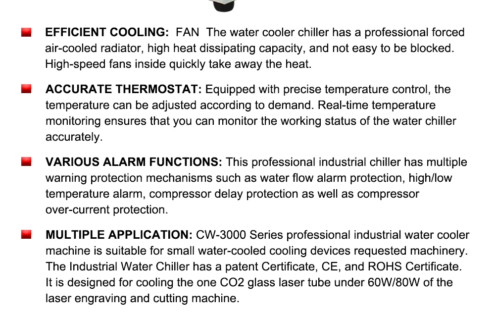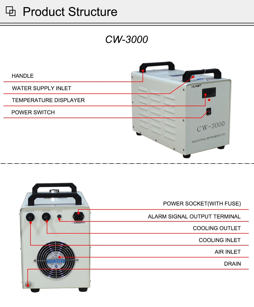 Промышленный охладитель воды Hunst CW3000 для CO2 лазерной гравировки, режущая машина, охлаждение 40 Вт 50 Вт 60 Вт 80 Вт, лазерная трубка.