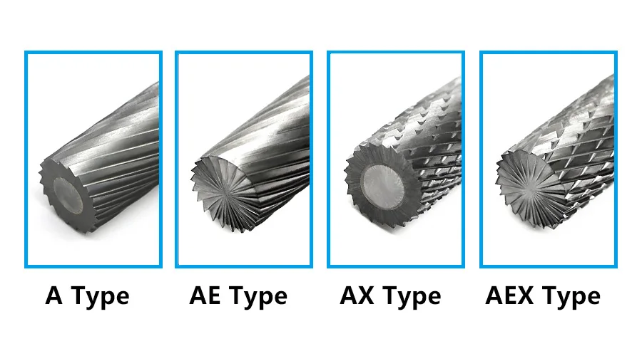 Тип AEX: двойной слот с концевой кромкой, подходит для мягких материалов, для отделки более глубоких внутренних торцевых поверхностей.