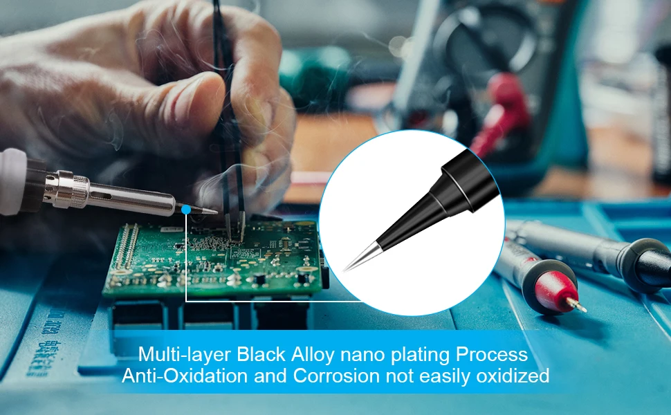 • Хорошая теплопроводность, быстрый нагрев, длительный срок службы, анти-статические. Подходит для сварки и ремонт мелких деталей в соответствии с высокой точностью.