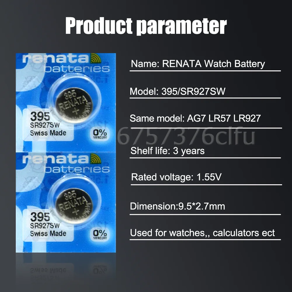 3 шт. Новый Renata 395 SR927SW AG7 LR927 LR57 399 SP395 LR927W 1,55 V оксид серебра часы батарея Сделано в швейцарской кнопочной монетной ячейке