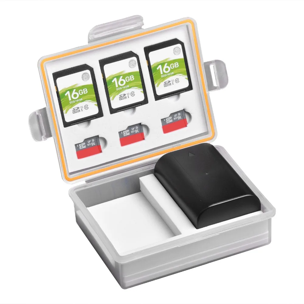 ● Ящик для хранения может вмещать 2x батареи камеры, 3x sd-карты и 3x tf-карты.Однако Примечание:Что этот ящик не имеет водонепроницаемой функции. Не попадите прямо в дождь или не замачивайте в воде.