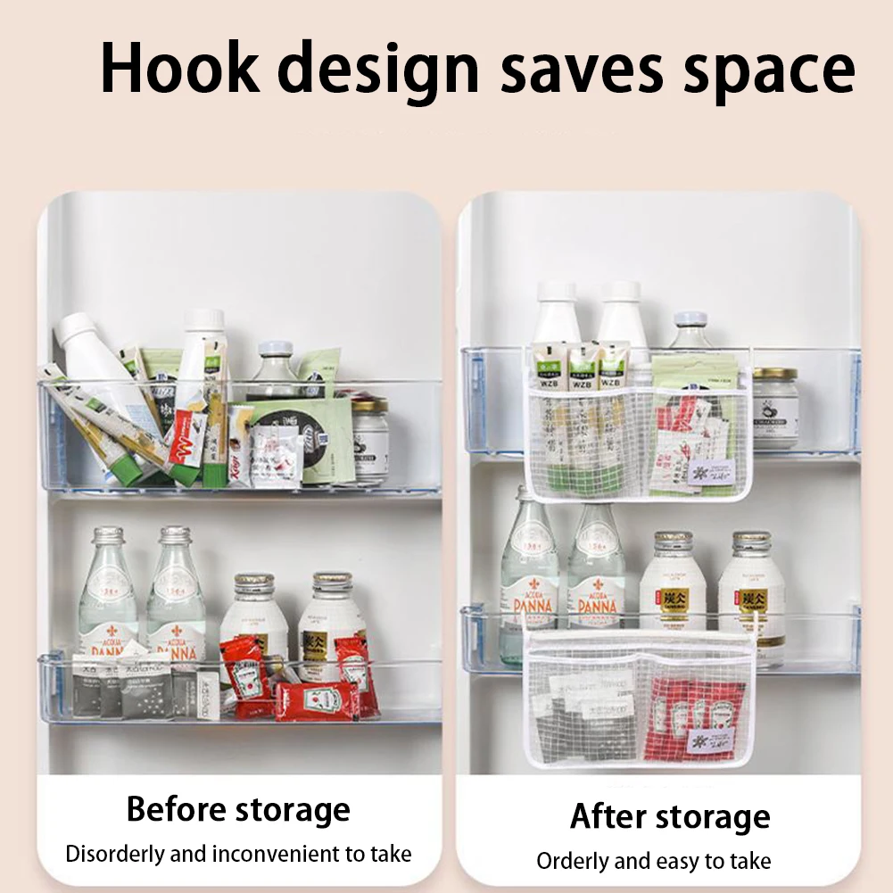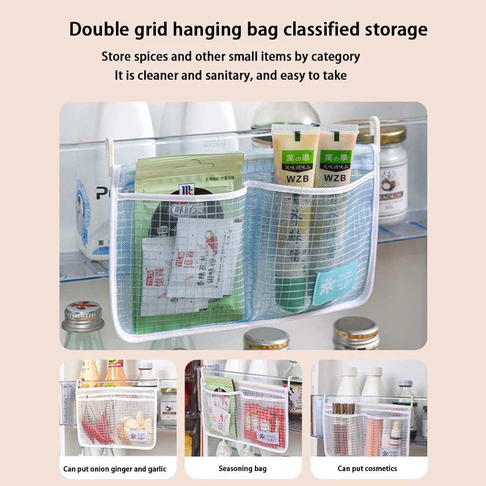 Органайзер для холодильника, сетчатый мешок для хранения, бытовой кухонный карман для холодильника, двойной отсек, висячие Сумки