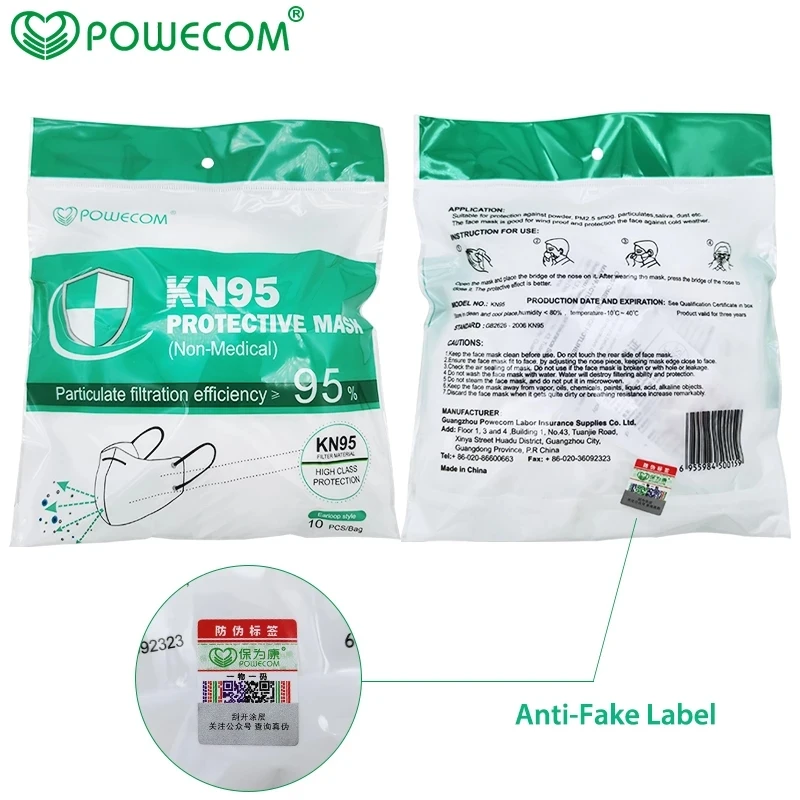 100% оригинальная маска POWECOM KN95 с анти-поддельным QR на каждом пакете;