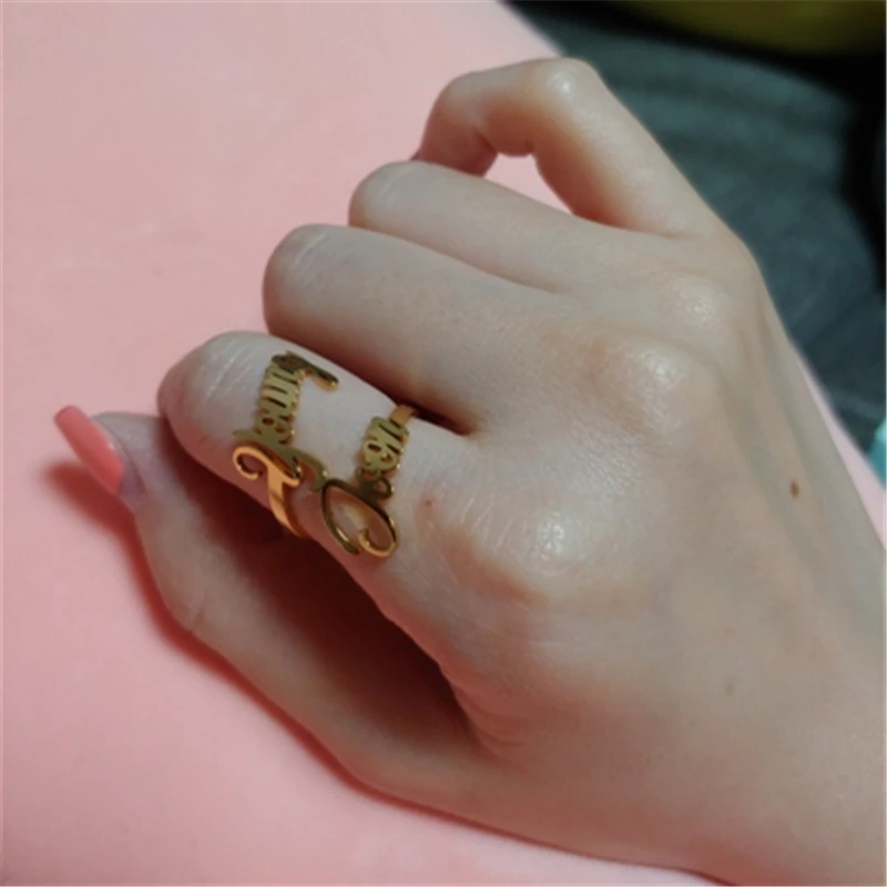 Индивидуальные Кольца с двойным именем, регулируемые кольца золотого цвета из нержавеющей стали, именная табличка для женщин и мужчин, семейное кольцо, ювелирное изделие, подарок