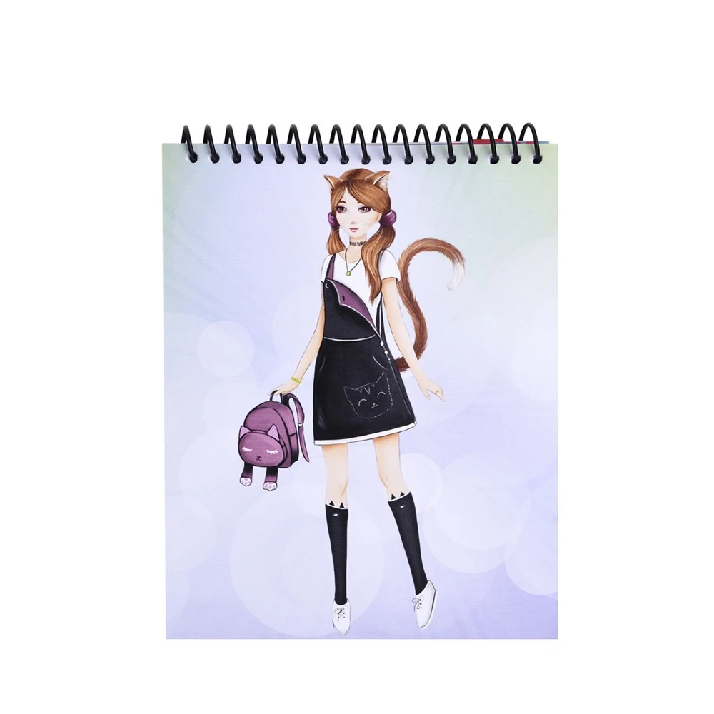 Блокнот дизайнера для рисования для девочек с трафаретами и наклейками, "Девочка-кошка" арт. 12257