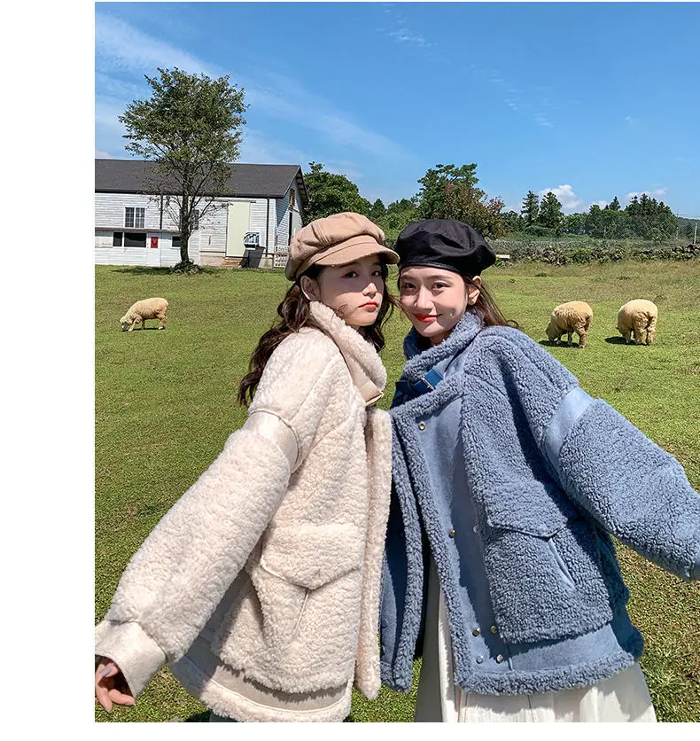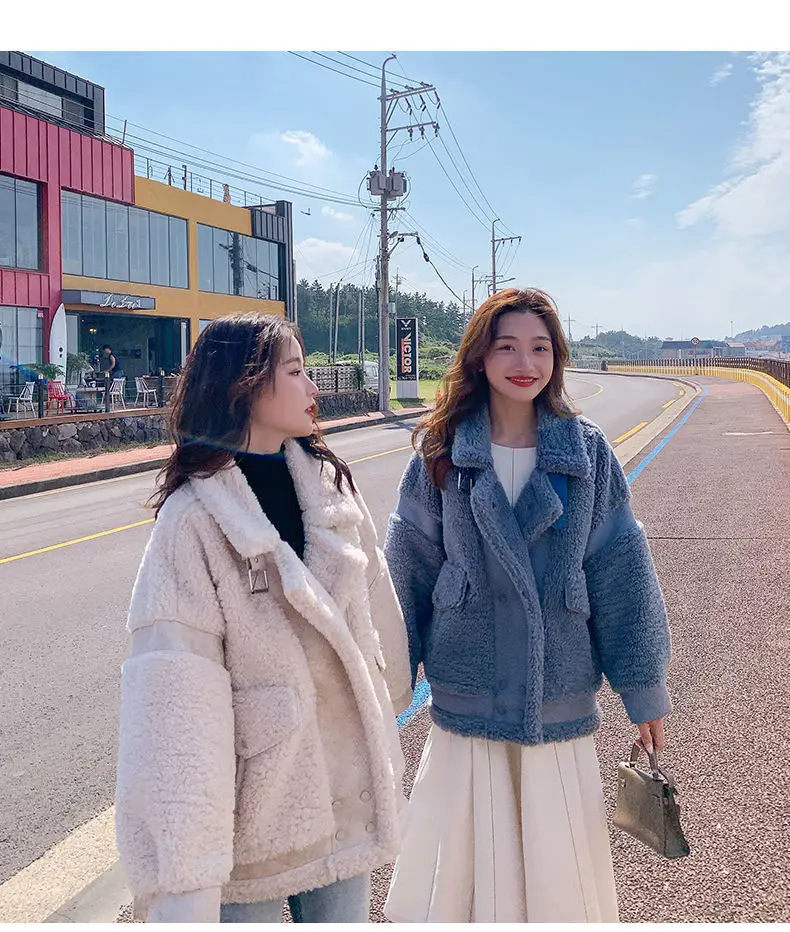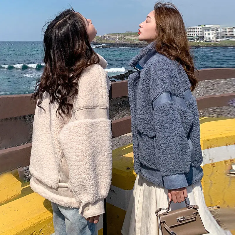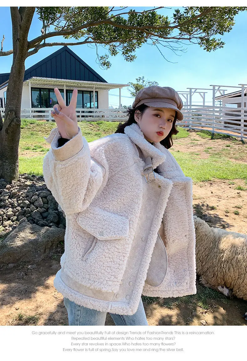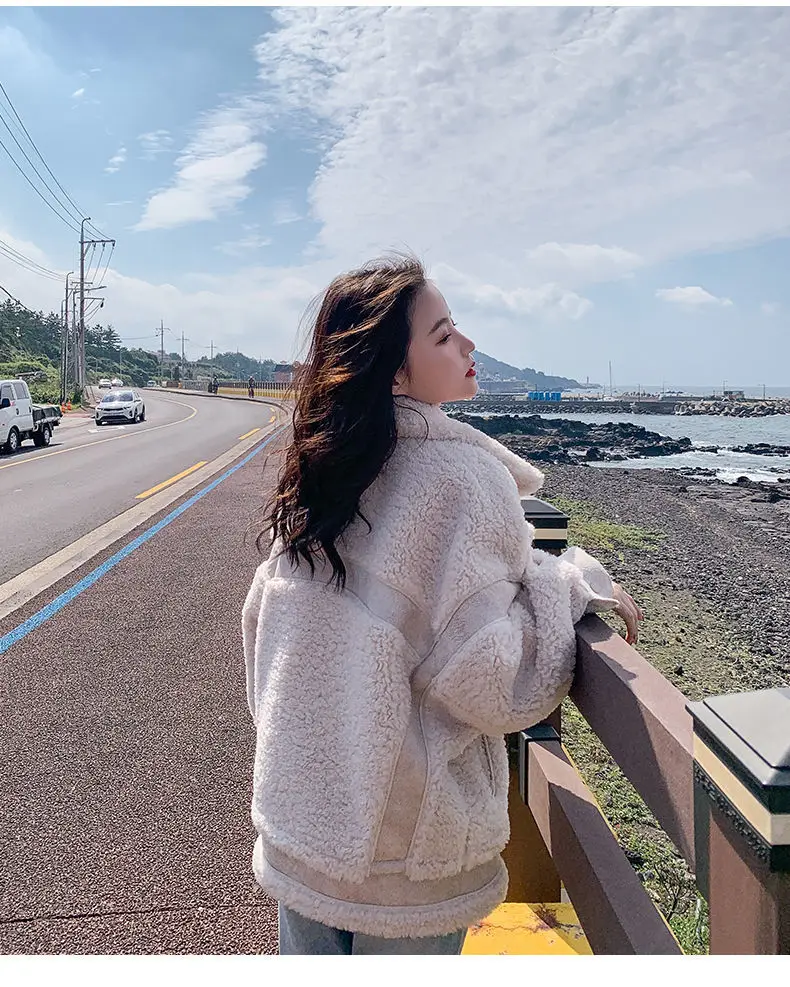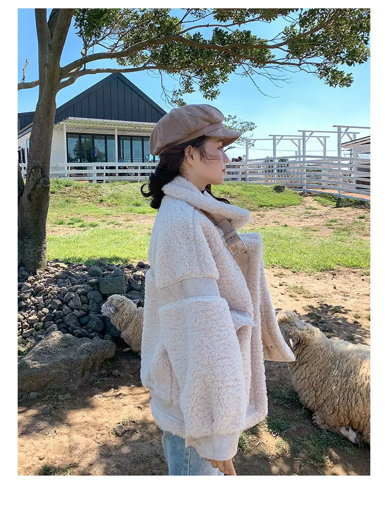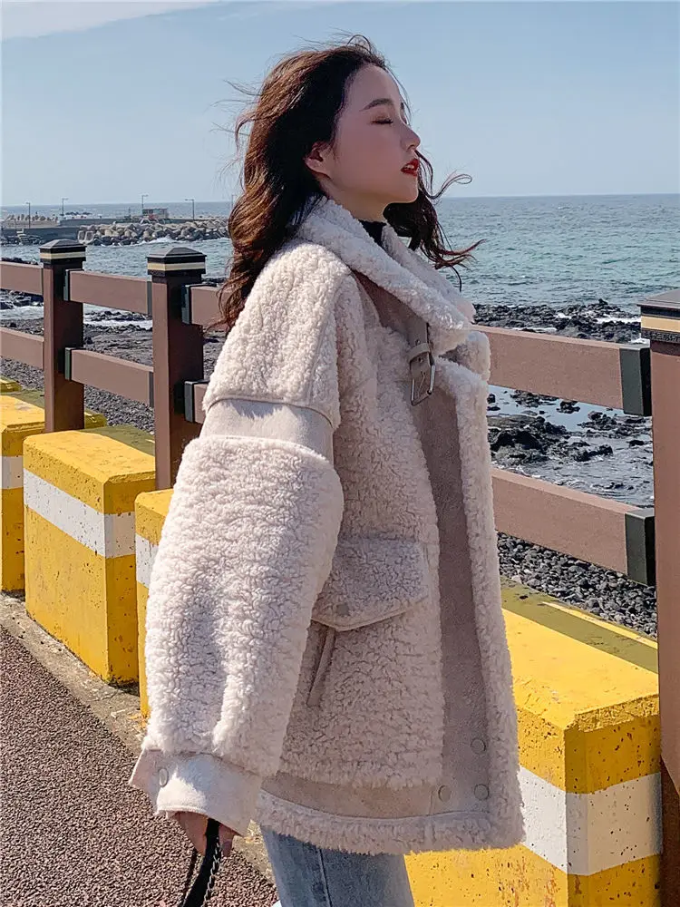 Осенне-зимнее универсальное мотоциклетное пальто из овечьей шерсти 2022 модное пальто с мехом ягненка женская Корейская свободная замшевая меховая универсальная куртка