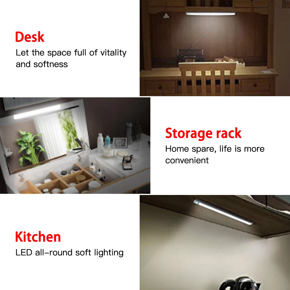 *3.Rechargeable Operated & Large Battery Capacity: Cabinet led lighting built-in 1000mAh rechargeable battery, easily to charged via usb. Don't to need replace AAA batteries frequently.These closet lights last for up to 3 hour usnder on 2 mode, and last 1-2 months under motion sensor mode.Can be used as a flash light or emergency lighting for 3 hour with full charge.